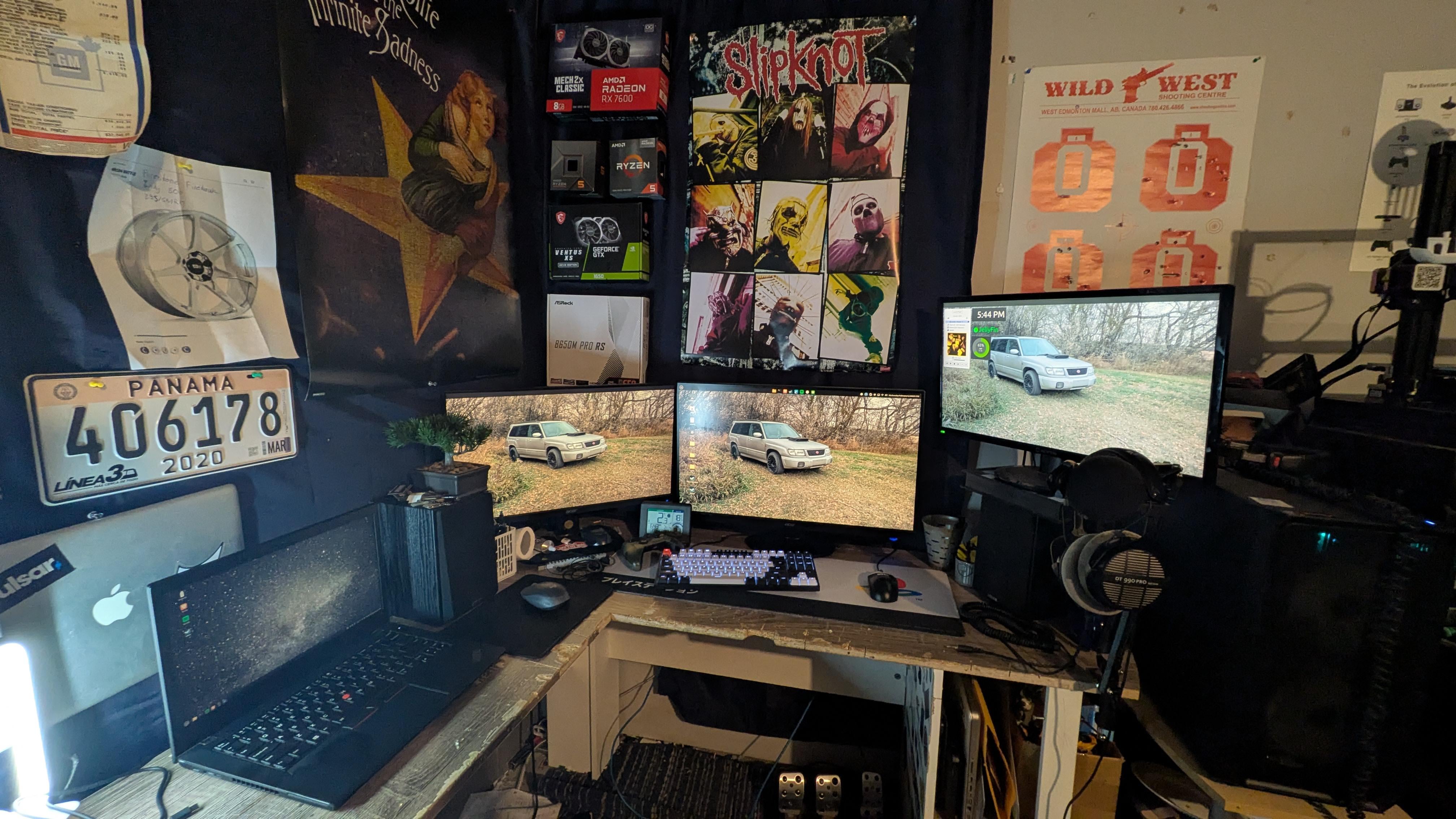 Desktop is an R5 7600+Radeon 7600, Thinkpad is a T480, both running LMDE7, PS2 Slim and TV off to the side Posted by Busy_Ad5224