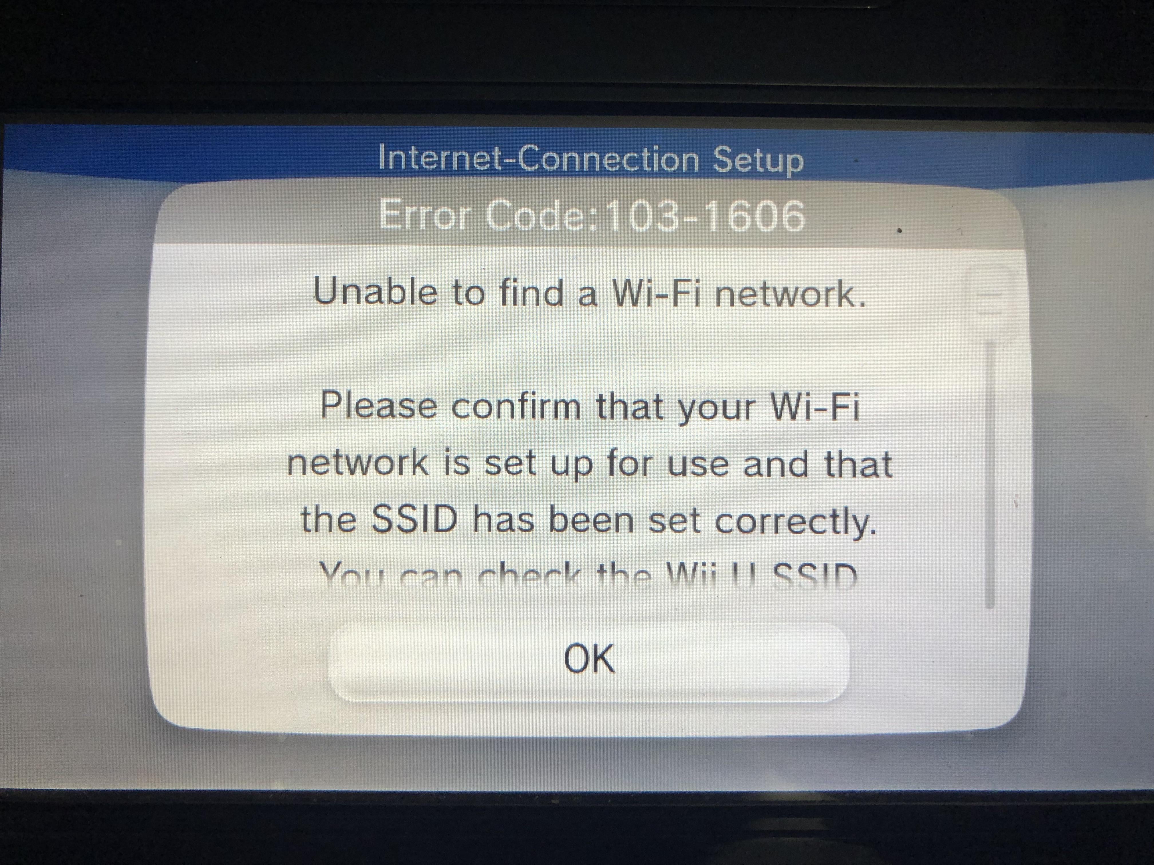 Hello all! I cannot connect my Wii U to the WiFi! It used to work, but after a week of not playing I cannot connect again. I tried to manually enter the ssid number, the ip addresses(even tried the +10 trick on the last number of the ip) and the dns.I also brought the Wii U closer to the router, reset the router and hard rebooted the Wii U. The weird thing is that it picks up the WiFi from me and my neighbors and also every other device works easily with my WiFi. I also don’t have a external drive on top of the Wii that could cause an interference.