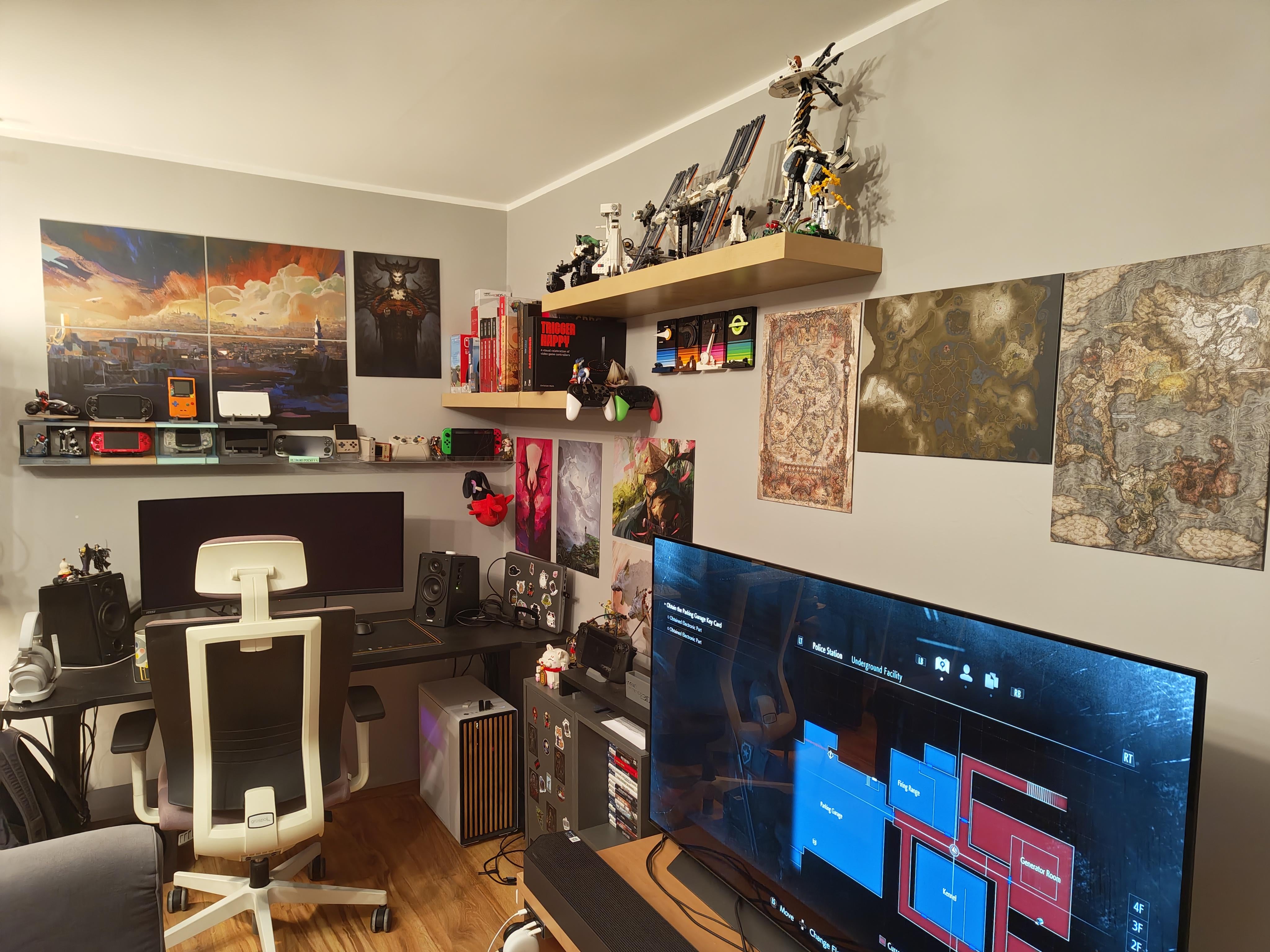 I took that picture so that you can actually see stuff. There is another light that's way less harsh to the side of the desk Posted by One_Cream_7687