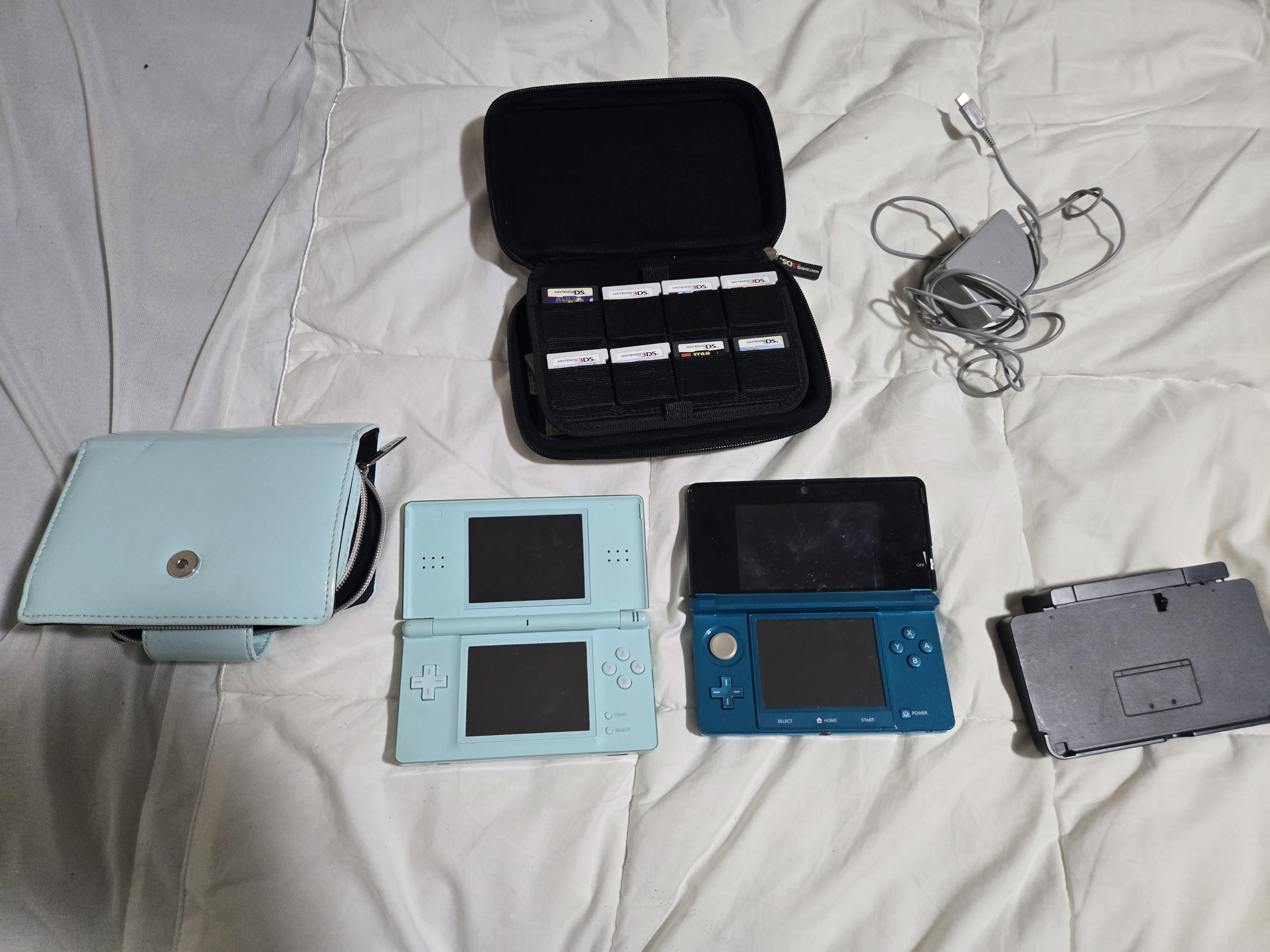 My 3ds and my sisters ds lite. (My ds lite is long gone). Just read the rules and deleted a paragraph. Im looking forward to playing any monater hunter games that might be on 3ds. I play my PS Vita quite often but I knew I had this lying around so I figured id see if it still worked! Thanks for letting me join your community!