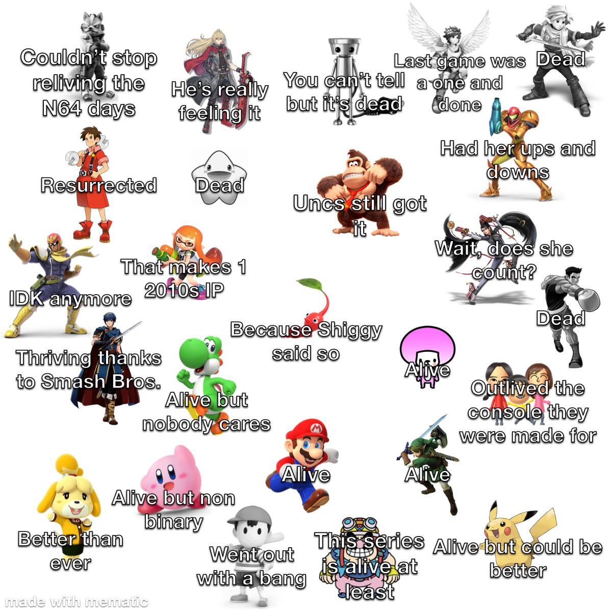 This meme but with Nintendo franchises. If I forgot one, I’m sorry.