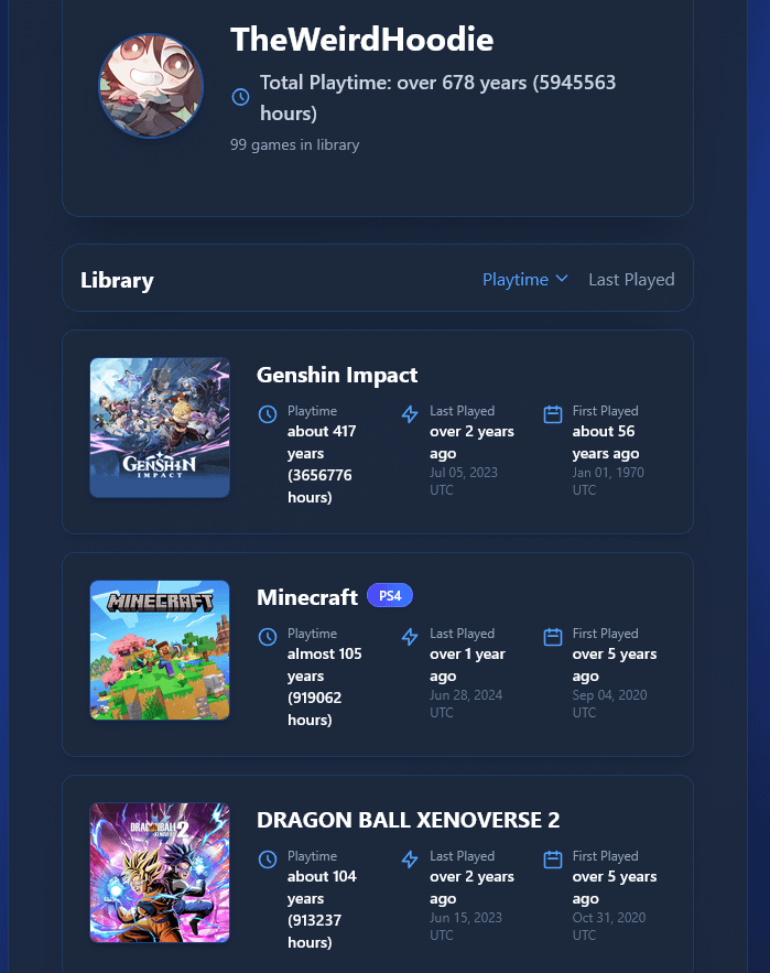 it shows this on every single playtime tracking app and i just found it hilarious