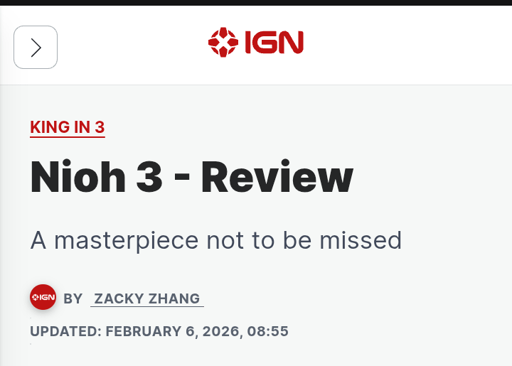 juicyman69 on February 7, 2026 11:54 am [https://www.metacritic.com/game/nioh-3/](https://www.metacritic.com/game/nioh-3/)