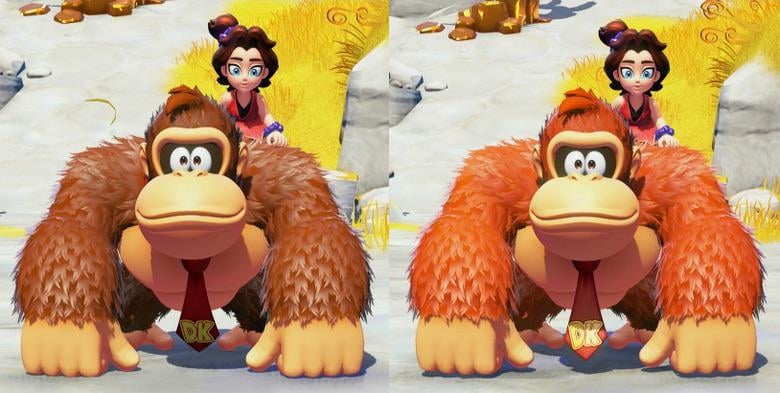 So I’m playing through DK Bananza and I keep noticing that DK’s fur keeps switching between his usual dark brown and a more orange like brown. Can someone explain why it’s like this?