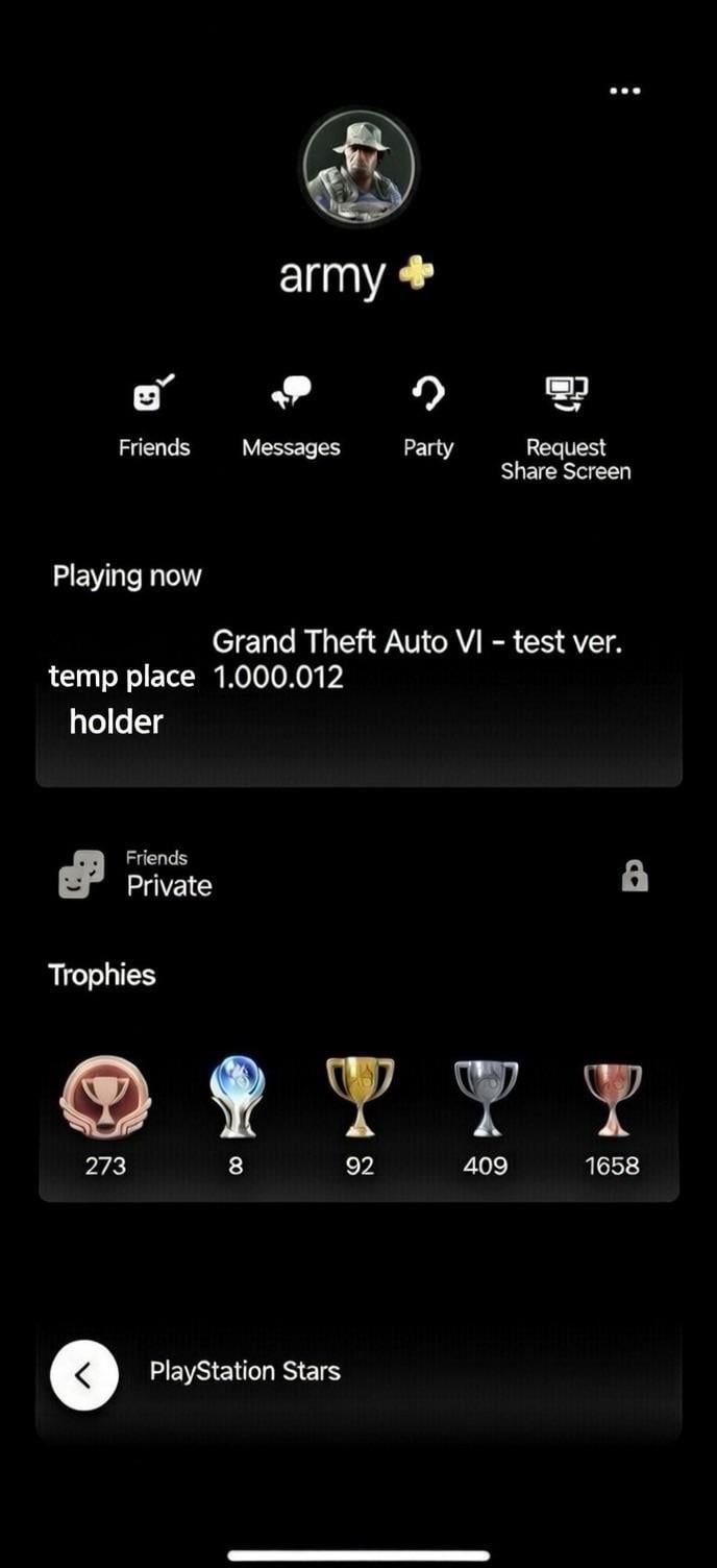 Probably an exploit that has something to do with what game you’re playing he probably has an app running called specifically “GTA 6” that was side loaded onto the console to give off the illusion that he is playing gta 6 . I’ve seen people do this on pc with discord. Also if he was really playing gta 6,it would show the games icon,not “temporary place holder” since gta 6 has a game icon on the playstation store. So yeah,it’s not real.