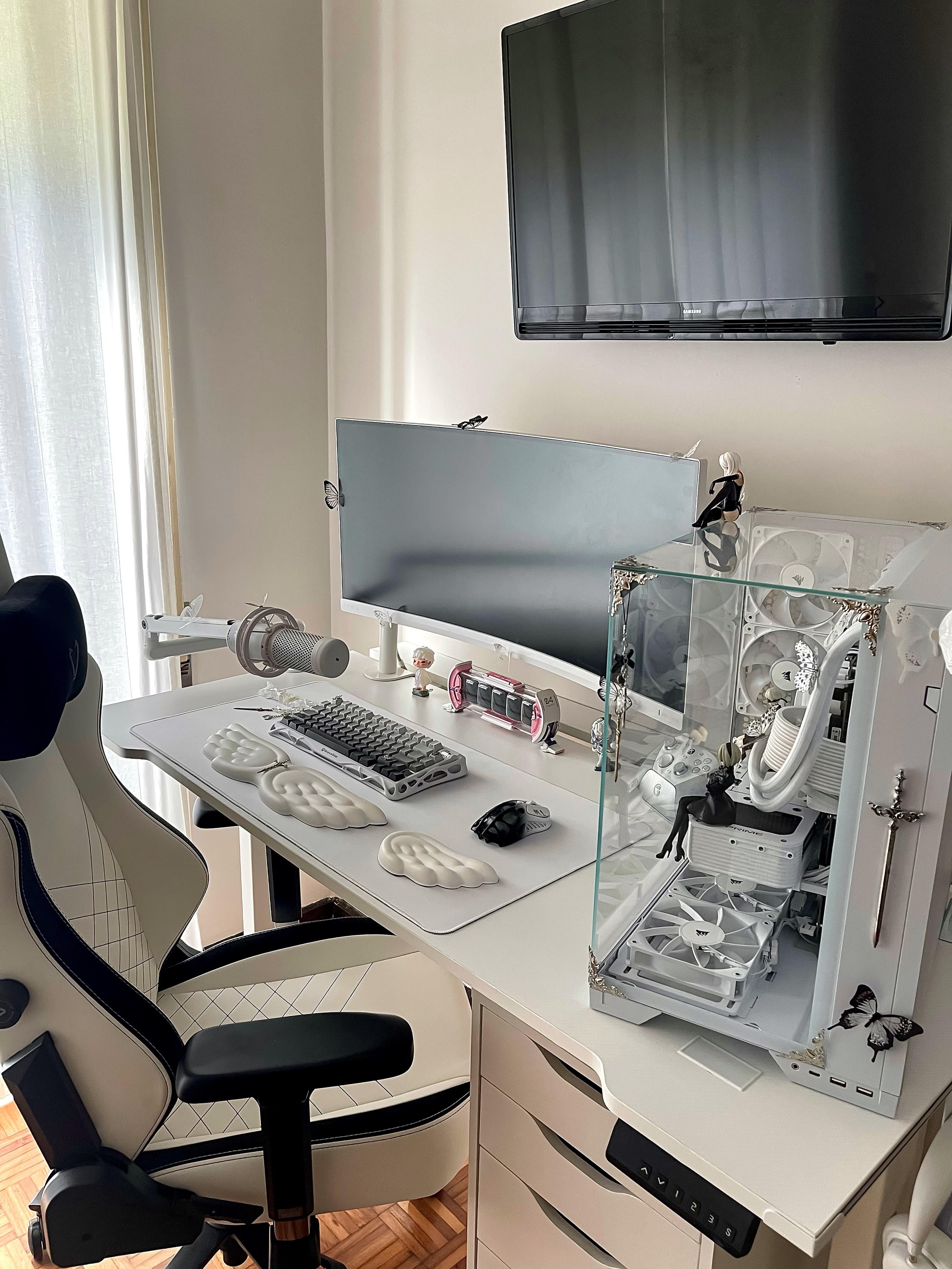 Got my first mic and a cute little divoom to add a bit of character (and color) to my setup. My second monitor is also on its way to me so I’m planning on doing a bit more upgrading soon. 🙂‍↕️
