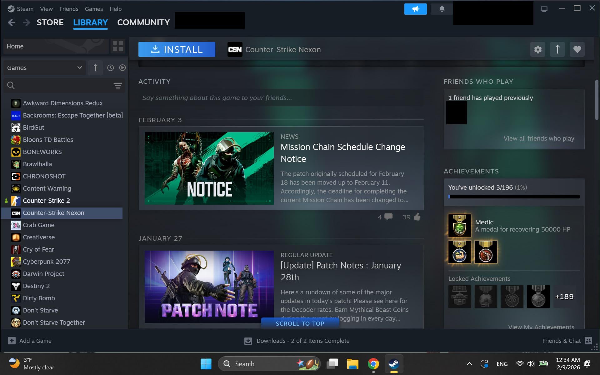 I was just clicking through my library and when I clicked on CS:N, I earned these three super rare (0.4%) achievements just as I clicked on the game. Very weird. These are the only three achievements I have and I’ve only played the game for 12 minutes.