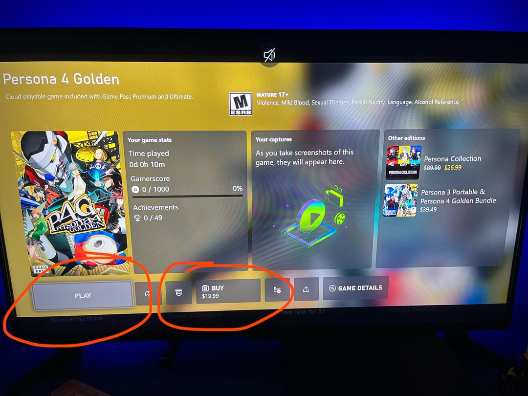 I feel like I have to share this with yall because this could be major news, or just a major bug. Please read? I own P4G on Steam, and only Steam. However, today I got into the Microsoft Store on my Xbox One X and went looking at some Persona games I was thinking of getting on it. I opened the page for P4G even though I already own it out of curiosity of the reviews, but for some strange reason the game said “Install – You Can Play This” when I don’t own the game? Could this be a potential Microsoft x Steam integration or a massive bug? I then installed it and it actually let me play, despite me never buying it on this storefront. I am so confused but am so excited if this confirms Steam integration on Xbox. This is the only Steam game that does this though, and I don’t own any other SEGA games through Steam to confirm if this is a SEGA thing. And before yall ask, no I don’t have gamepass. The first image shows my Xbox and the second shows my PC so yall can see that I own P4G through steam only. The third one shows the game running on Xbox (without ever purchasing it 😮🤯?) Have any of yall seen something like this before?
