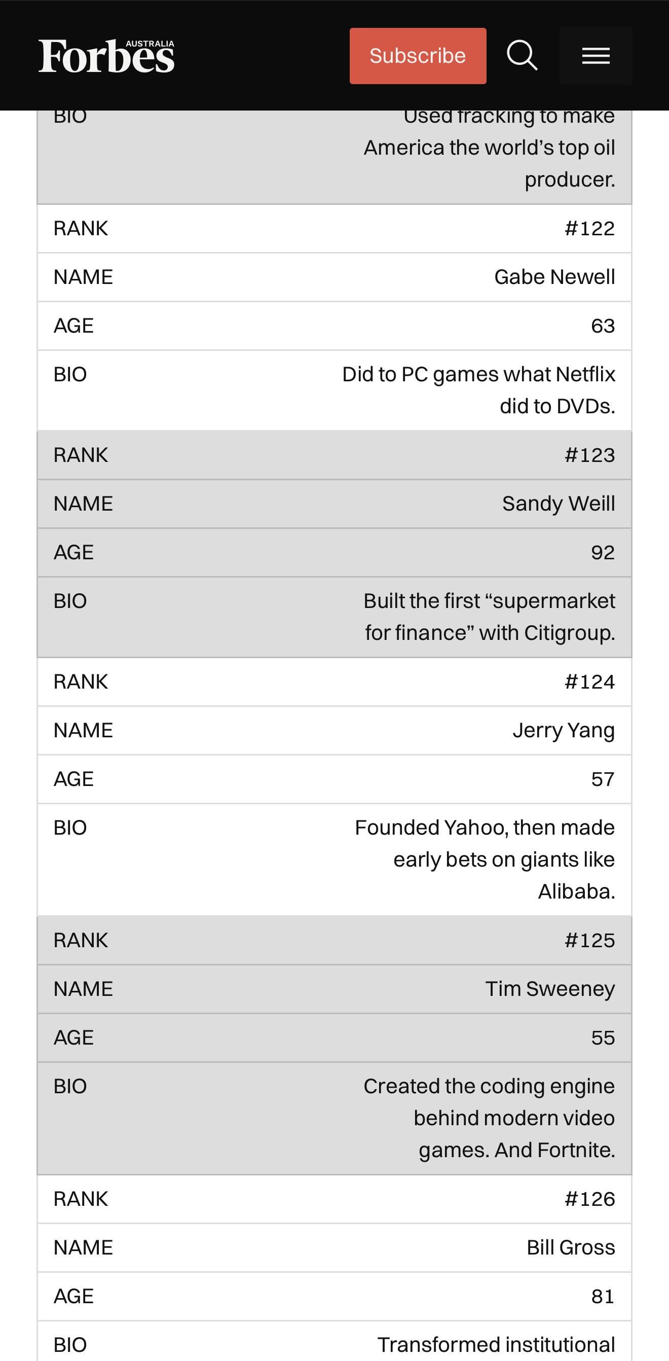 I refuse to accept any list that puts Gaben so close to Tim. In the hundreds, they are essentially interchangeable so close. Do better, Forbes