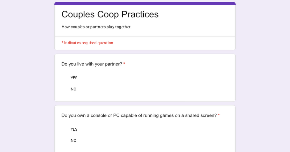 Hey everyone! I'm working on a project to help couples play together without it ending in arguments because one of them doesn't know how to use the camera š . I'm looking to talk to people who have already tried playing with their partner but gave up (too difficult, not interested, too time-consuming). It's to understand the obstacles, not to sell you something. The quiz is here. Thanks!