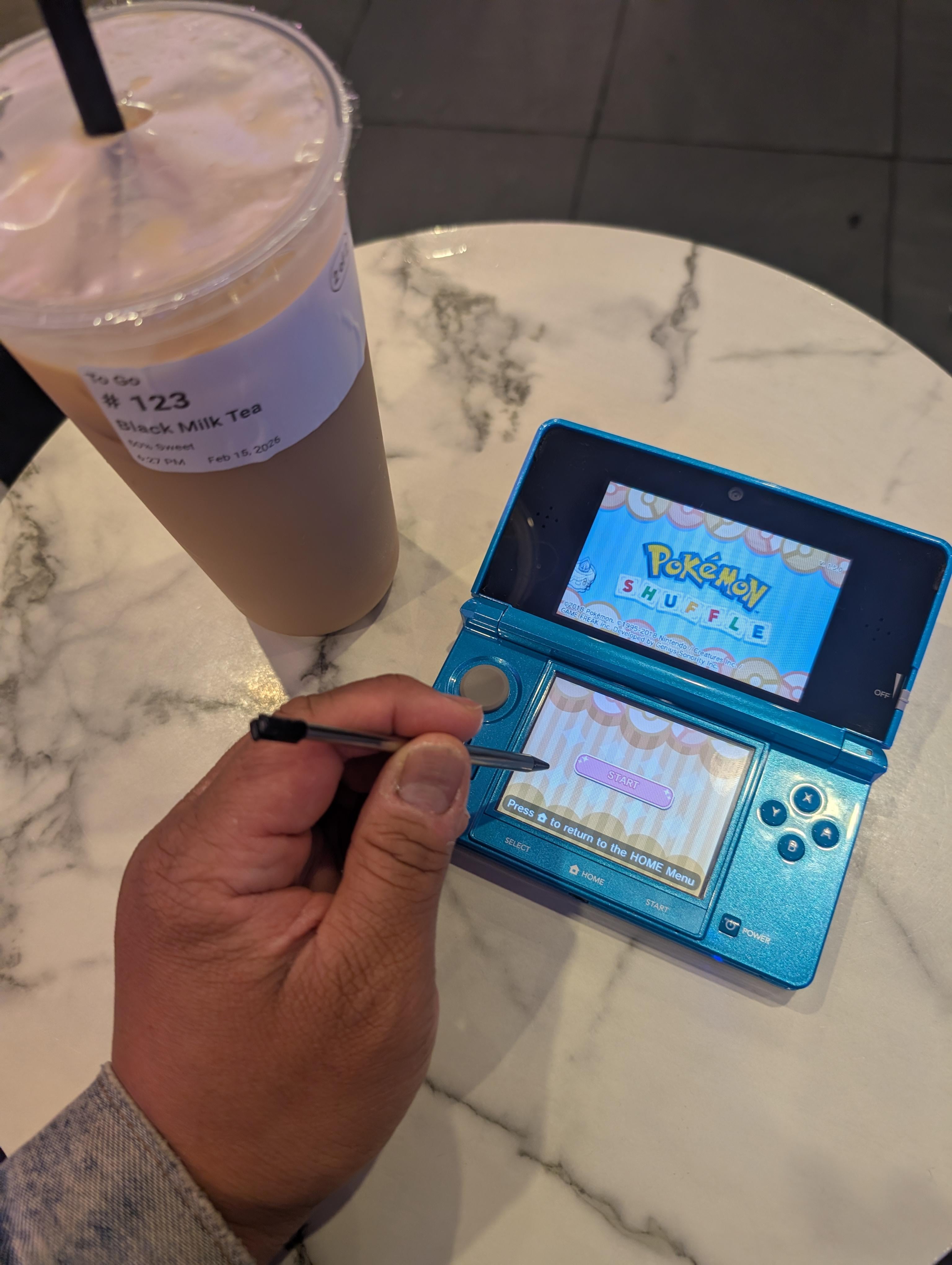 Grown man playing on a 3ds in public