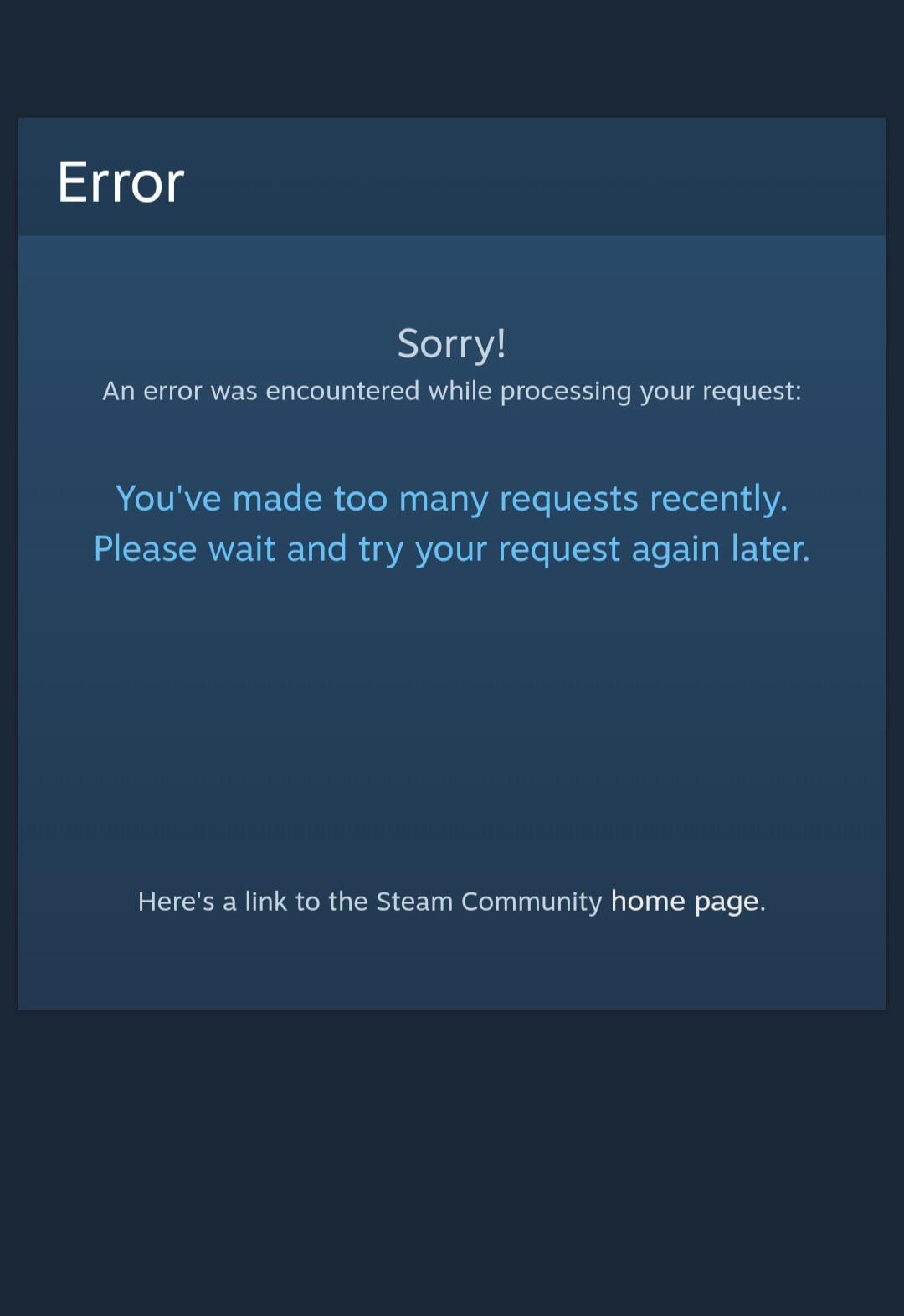 And cSg|mc-Hotsauce’s reply at the top will explain with details: [Please Fix ” You’ve made too many requests recently. Please wait and try your request again later.”](https://steamcommunity.com/discussions/forum/1/3729576253896440761/#c3729576253896470927)