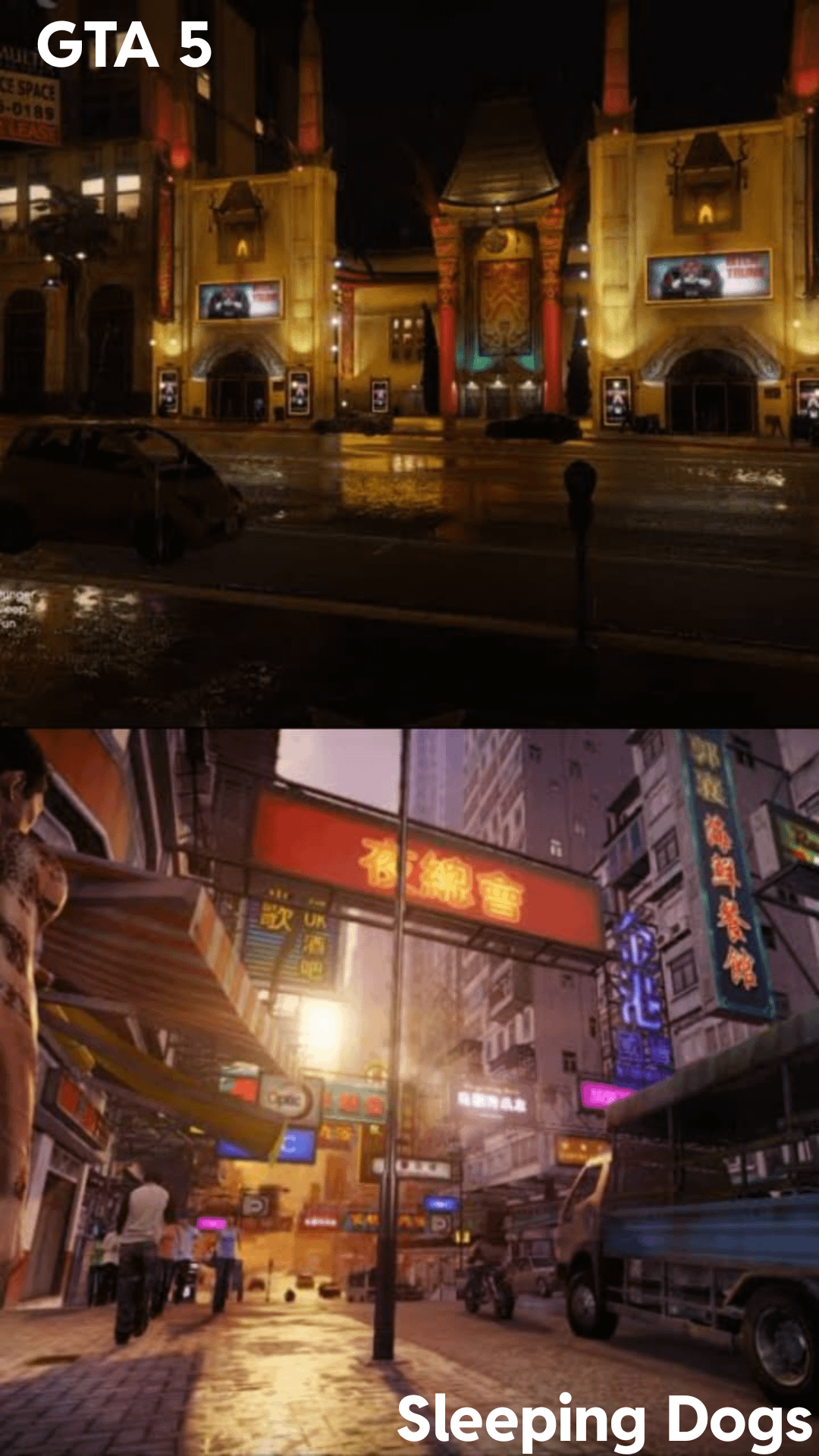 Sleeping Dogs had a smaller,albeit,jam packed map. GTA 5 while having a good environment has a lot more empty space relative to its map size.