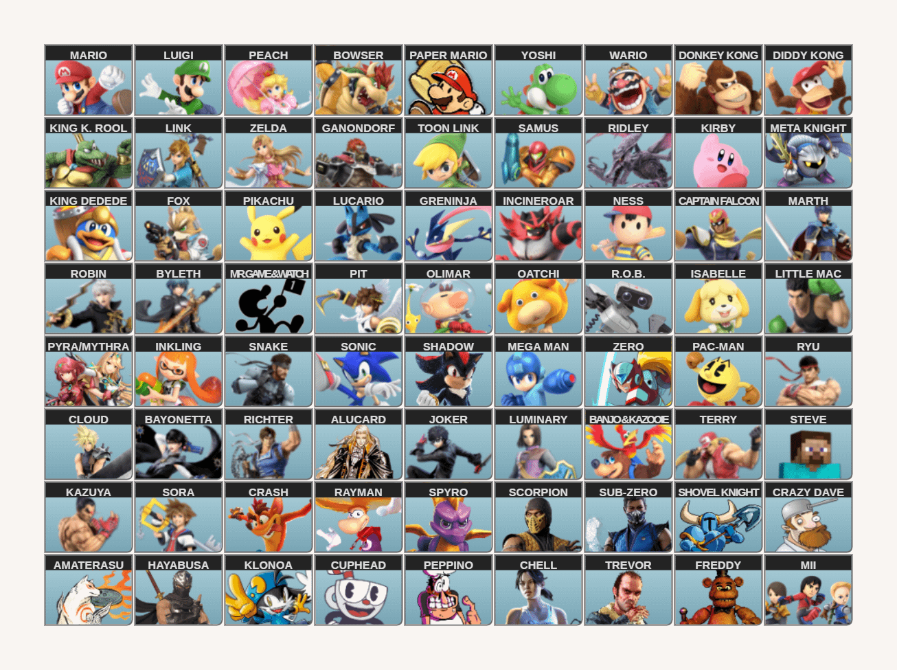 My personally ideal Smash roster (I apologize for some of the renders being a little blurry) Posted by Completionist_Gamer