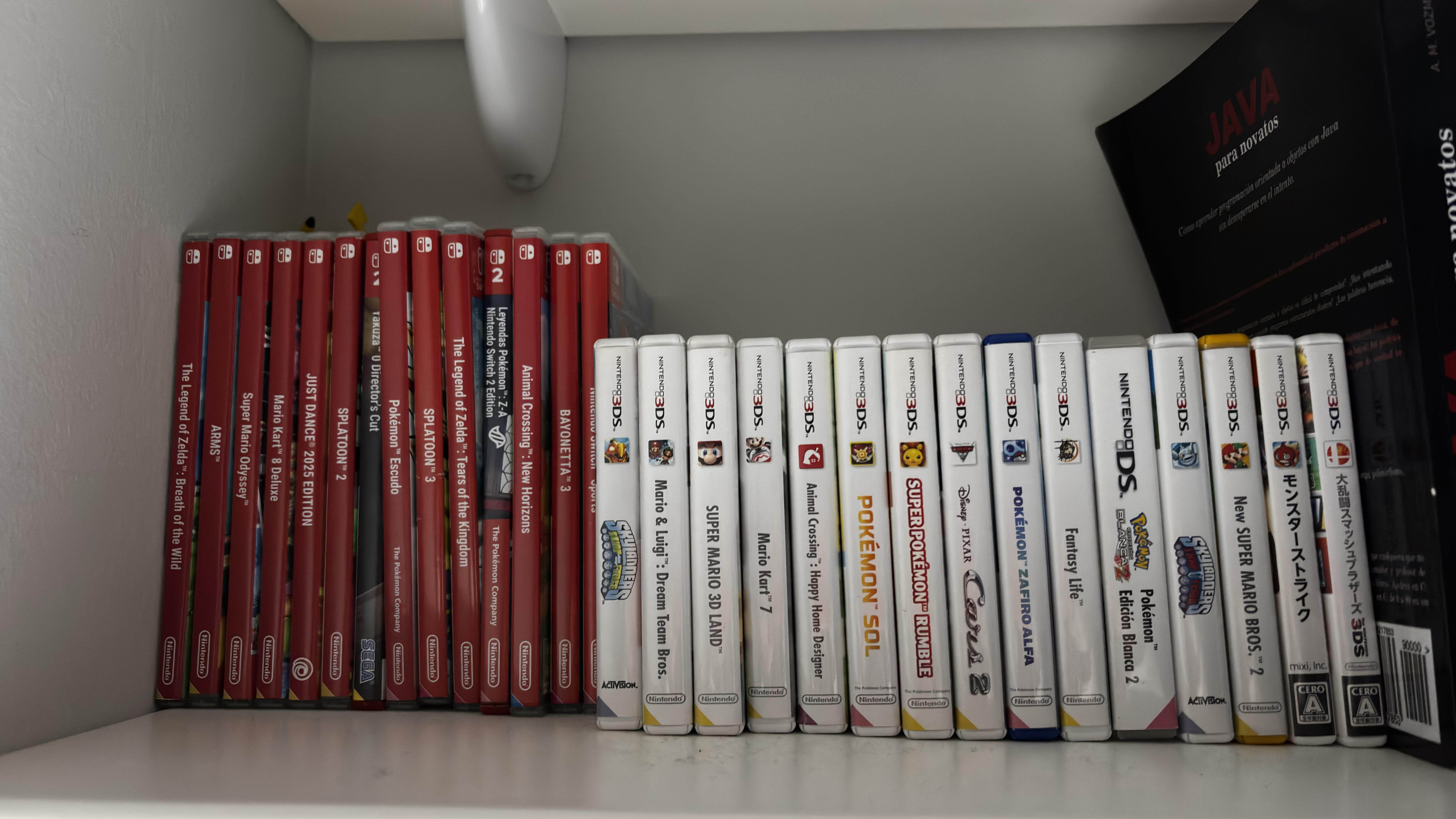 This is my physical collection that I started when I was 7, most 3DS titles are what I used to play, nowdays I mostly play New Leaf, Ocarina of time, Smash bros, Tomodachi life and those you can see on the switch side. I've been also enjoying cyberpunk, hades, hollow knight etc…