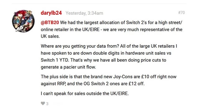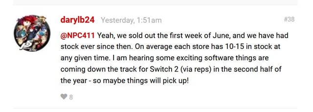 This user on Nintendo Life claim to work at a large UK retailer, and say Switch 2 sales have been disappointing. On a more positive note, they claim that “exciting software” are coming to Switch 2 in the second half of 2026!