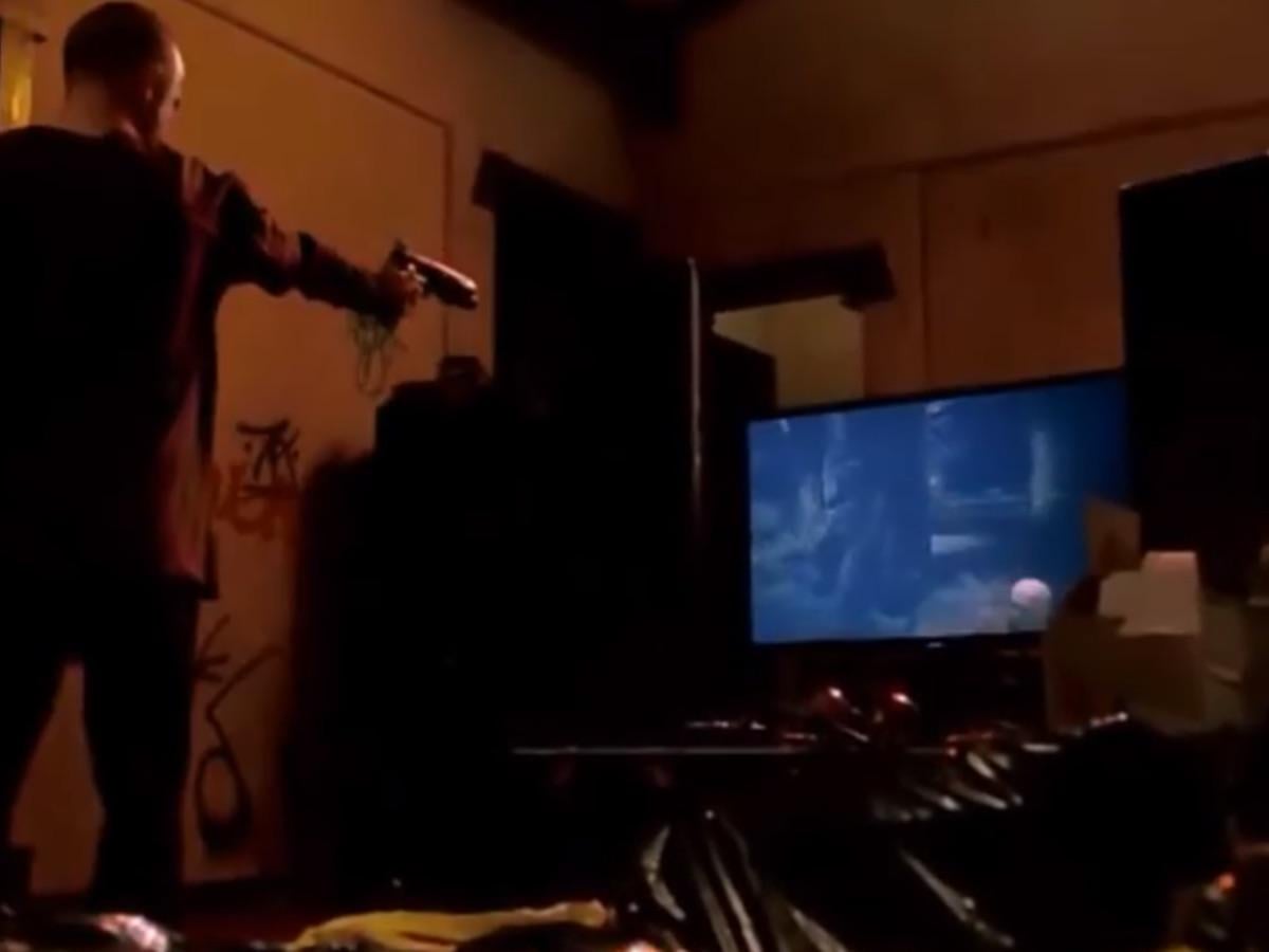 The video game footage from this episode of Breaking Bad comes from the game Rage and Rage did not have any kind of shooter controller for it. They used creative license here to enhance the emotions in the show and they weren’t showing an actual controller or way to play the game.