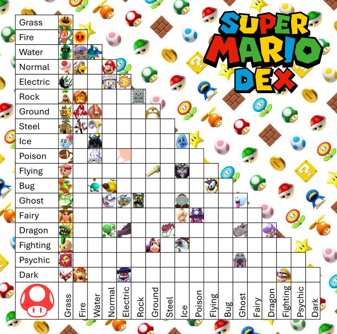 NOTE: To speed things up, I've added all the Mario characters who won the Nintendo Dex game that occurred on this subreddit. If you don't agree with one of these placements, you have two options: