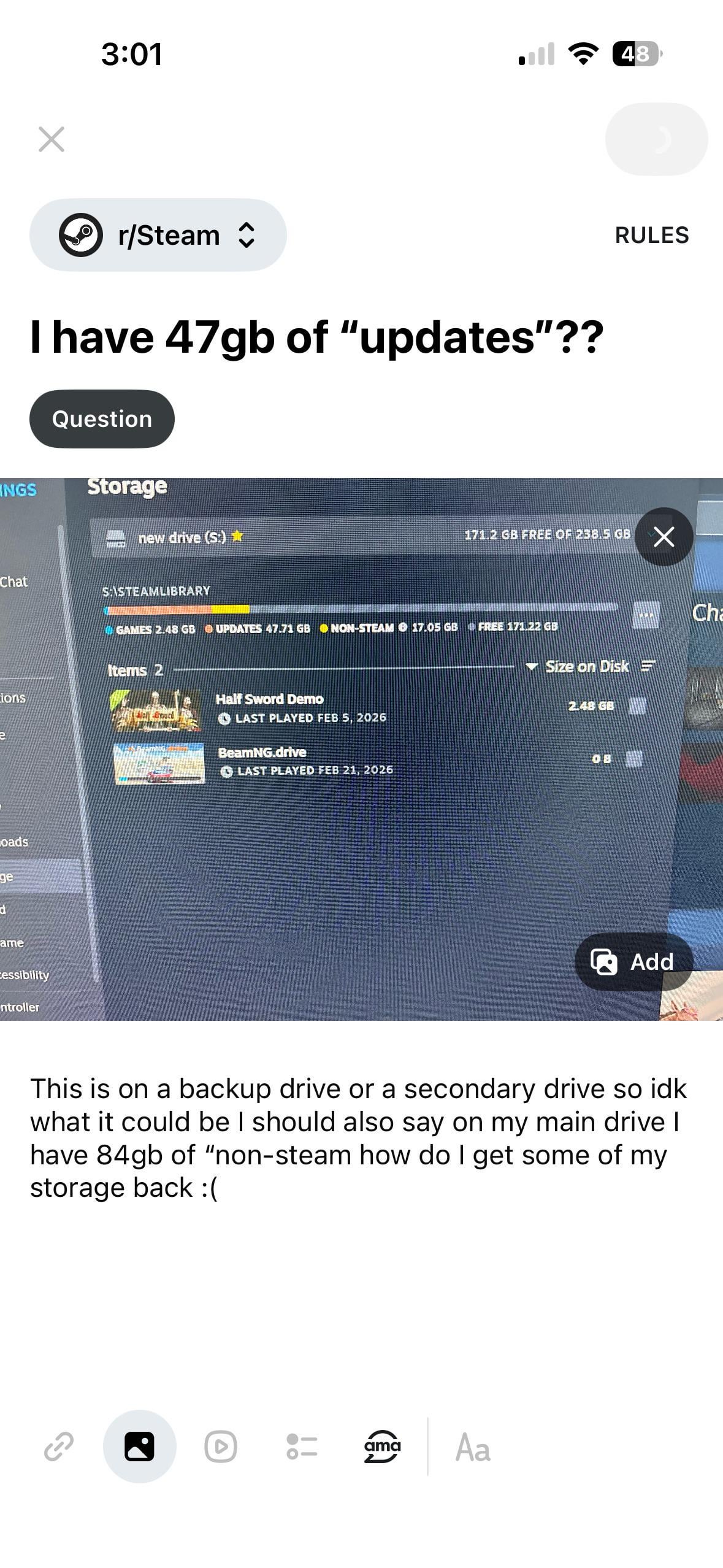 godspareme on February 21, 2026 9:06 pm Its the cache of incomplete updates. Finish all the games that are trying to update or delete the “updates” and let all those games start their update from the beginning.