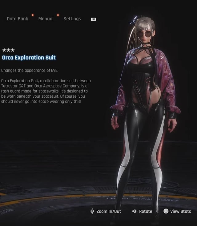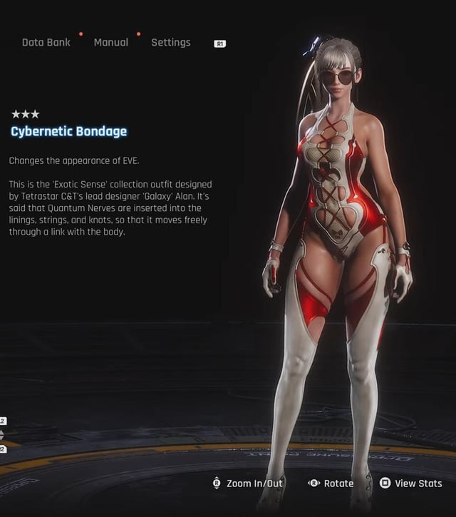 Hi! I hope I'm not bothering anyone with my post 🤗 If someone would be so kind as to use photo mode in HD and share pictures of Eve with these skins? 👇🏻 In all positions and angles. I don't have a PC, nor a PlayStation. I would really appreciate it.