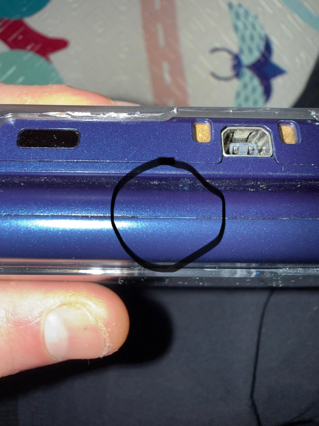 Hello guys, do you know what this is inside the hinge? I circled it in a photo where it can be seen more closely, thanks! I just bought this N3DS and it’s in mint condition, but yesterday while playing, when I closed it the light hit it and I noticed that. Without direct light you can’t really see it…
