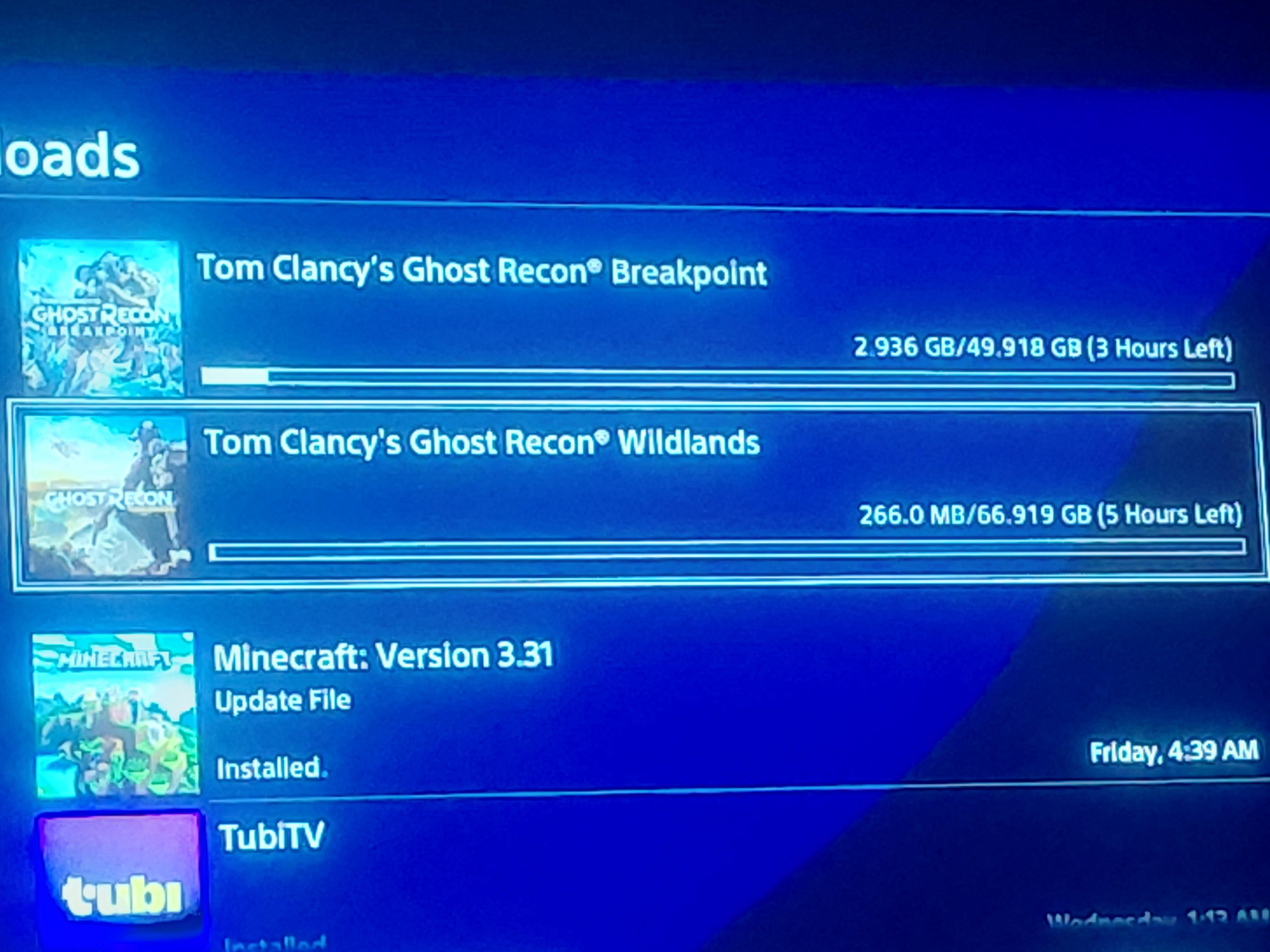 Recently, a pretty weird glitch has happened on my PS4. After I finally got it out of storage, I went and re-downloaded Ghost Recon Breakpoint and Wildlands. After a few days of play, both games were uninstalled for some reason. I'm the only one that uses it; I'm the only one that plays, so I'm confused. It also happened with GTA yesterday. All of my save data is fine; it just deletes. Maybe I have too many games?