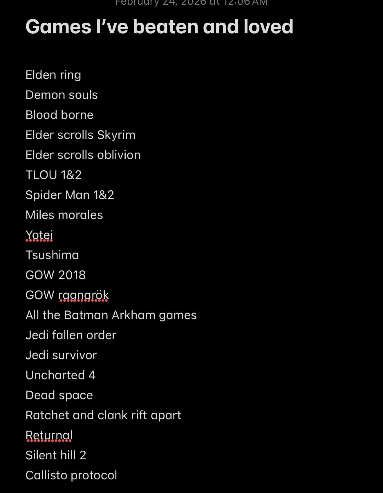 We have almost identical lists, but you’re missing about 250 hours from red dead redemption 2