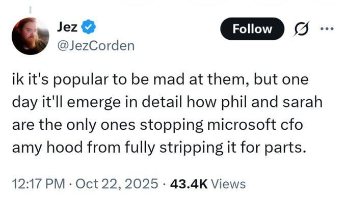 If Phil truly started talking about retirement last fall, surely it’s not coincidental that’s exactly when Amy Hood swooped in and demanded a massive price increase on Game Pass …