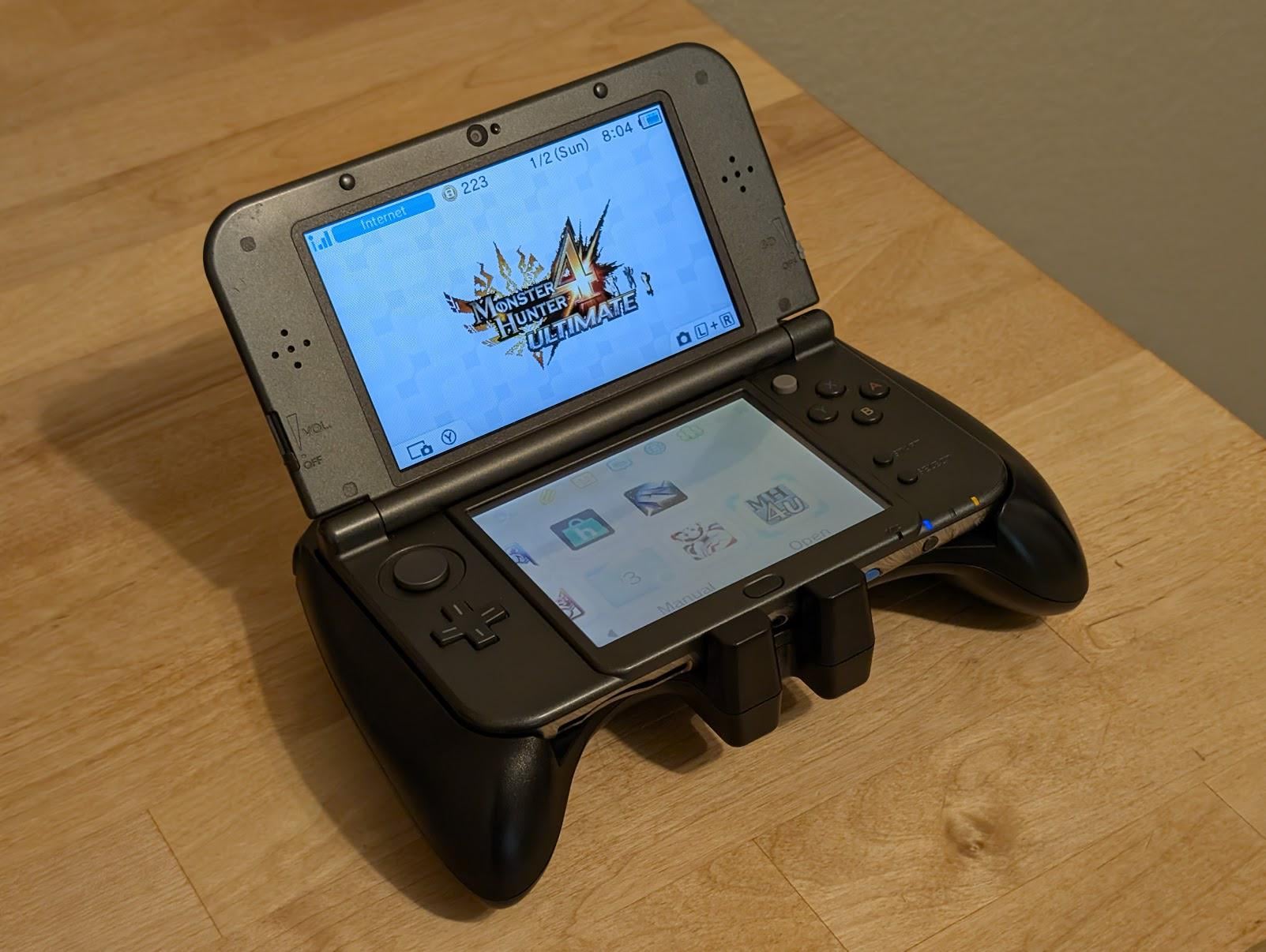 I bought a pair of Monster Hunter 3ds’s the other day, and they came with this grip.