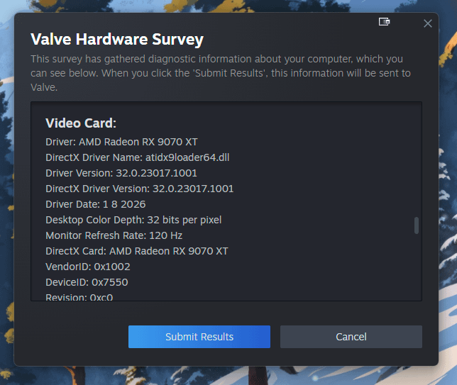 Just submitted my hardware for the Jan 2026 survey and the 9070 XT still isn’t showing up in the survey list. What is going on? Posted by Buttermilkman