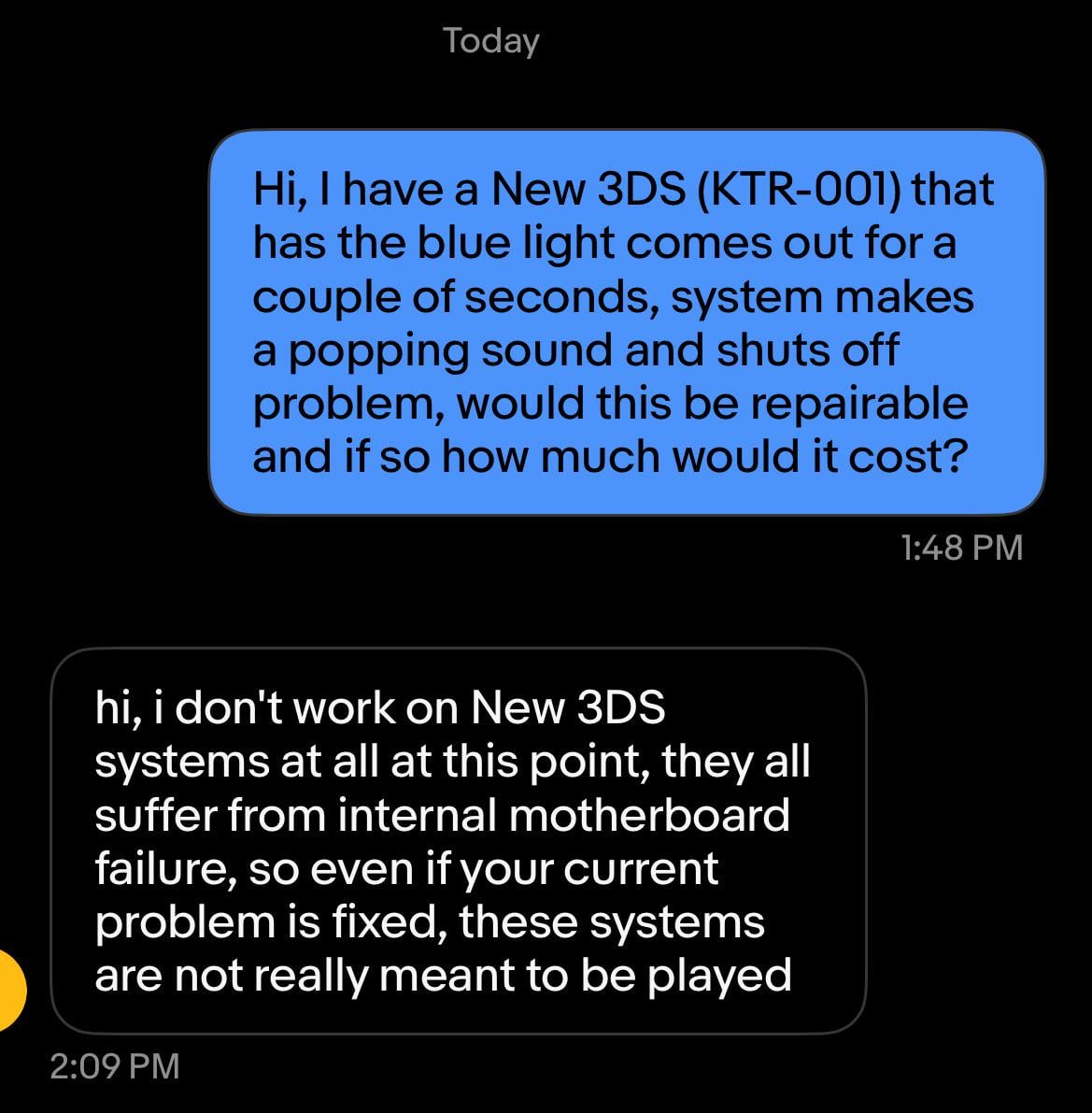 Not true at all. The issue is either with the top/bottom screen backlight/data ribbon cable, speaker ribbon cable, or camera ribbon cable. It *could* be an issue with the motherboard (e.g a broken connector), but thats a bold assumption to make and likely not what they mean. It sounds like theyre talking about hardware failure, which this is not an indication of in the slightest. If the issue is fixed it will work just fine, not sure why theyre telling you otherwise.