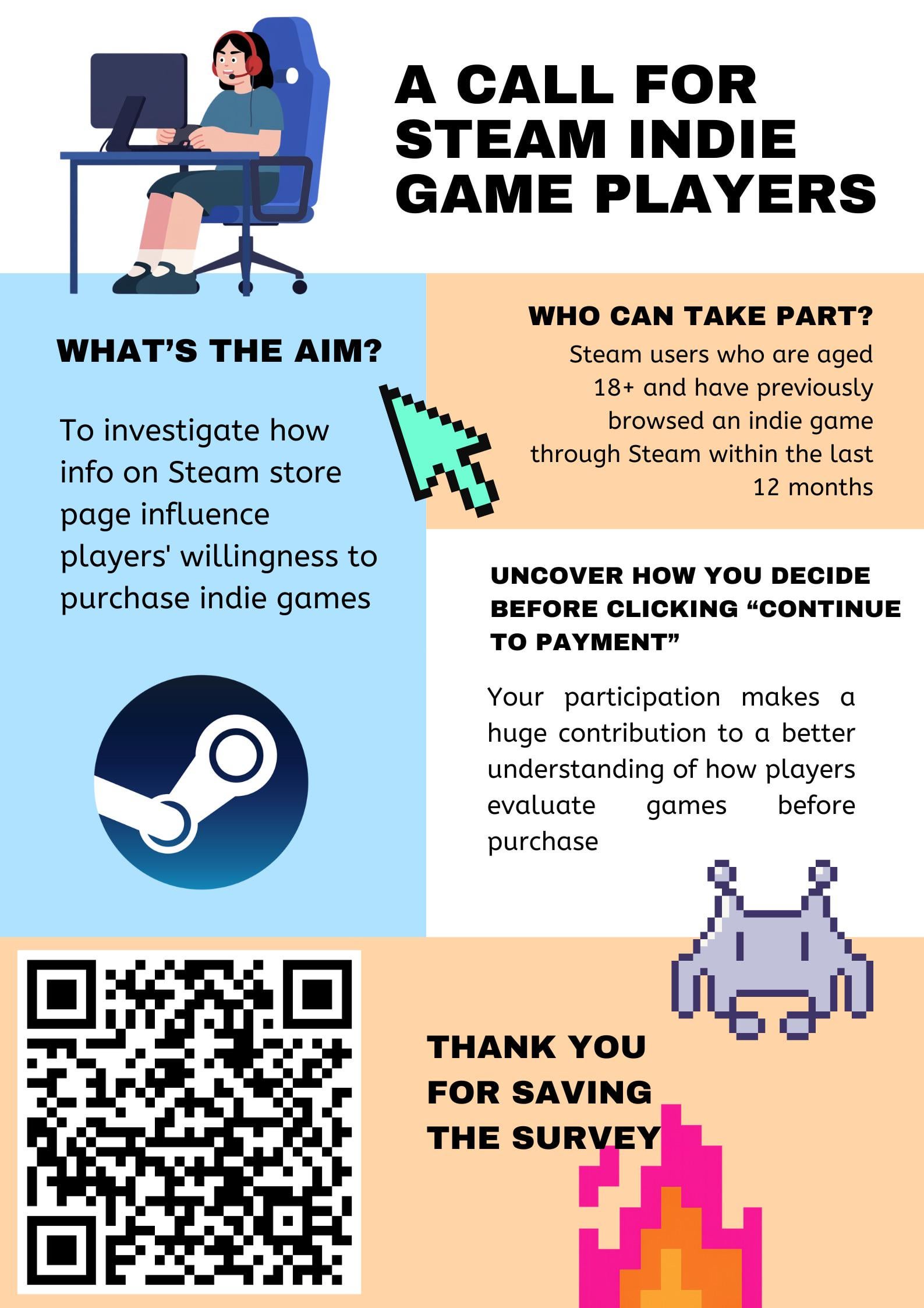 I'm currently conducting my undergraduate dissertation research on the store-page browsing experience of indie games on Steam before purchase.