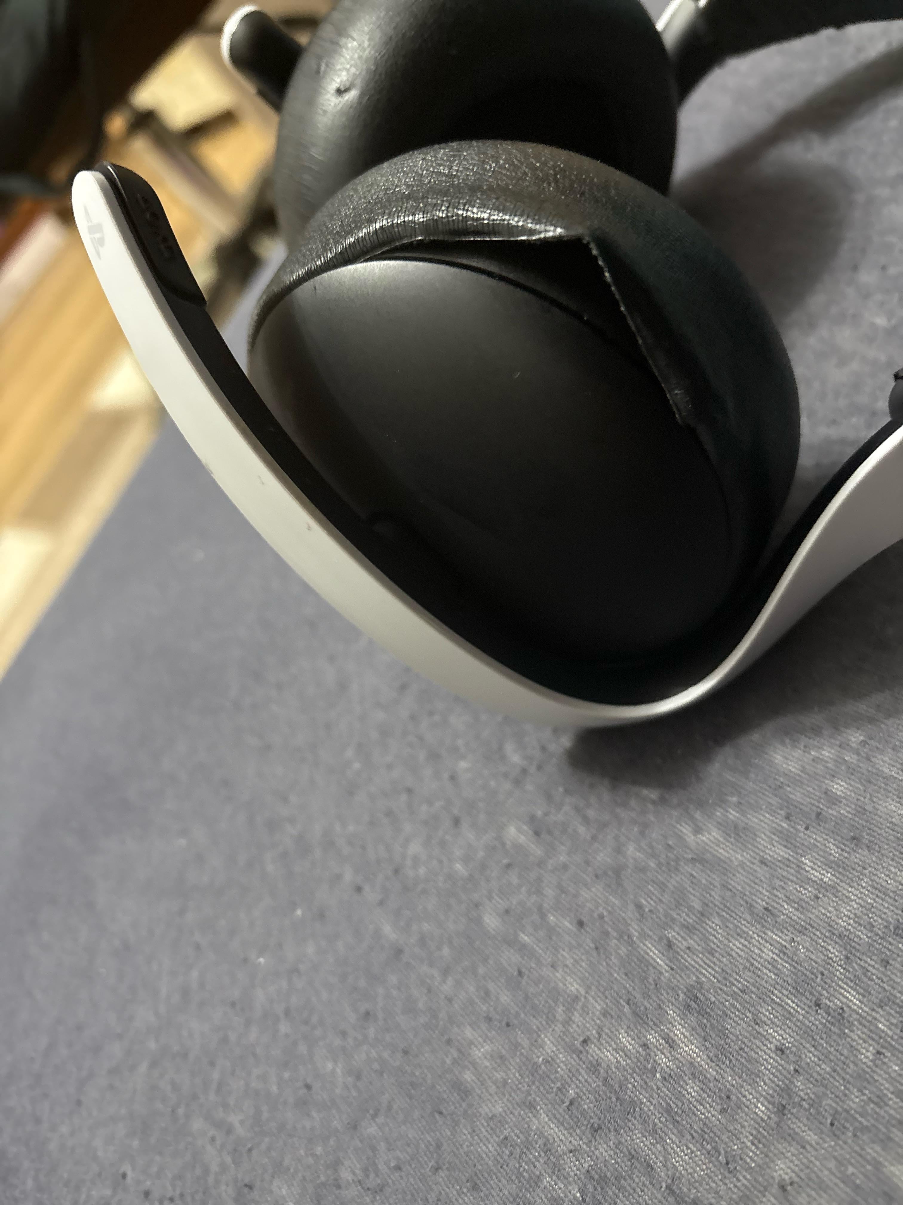 What your going to need to do is get a heat gun. A flathead screwdriver and a hammer. Start by using the heat gun to shrink the material a bit whilst using the flathead to ease it back into its original position. Then once you have done that as best as possible take the hammer and smash that to pieces. Go online or to a store and buy a reliable headset like a steelseries or hyperx. The pulse is garbage and the plastic strap will snap even if you fix the earpiece.