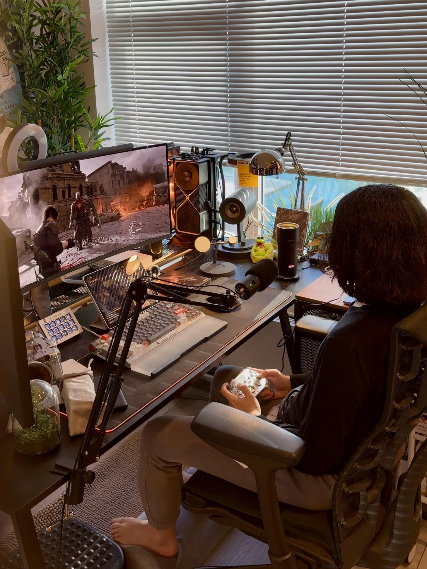 Blinds down and 3rd person Leon, but, still playing during the day