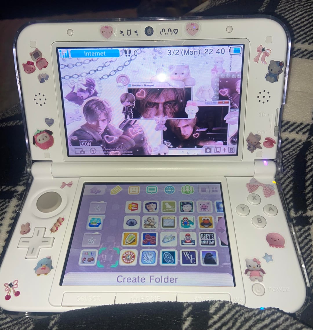 Finally decorated my 3DS! I’m unsure if I really like to front or if it’s too busy lol, but either way happy! I’ve been meaning to do it for a while now. Posted by idk0968