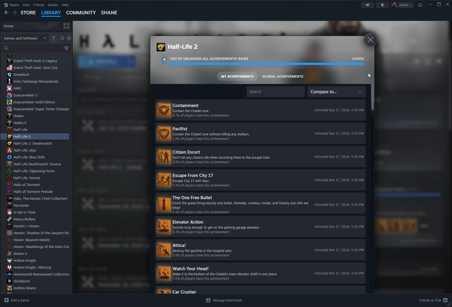 It still shows in my library that I 100% HL2: EP1 and EP2 on my perfect games but I don’t think anyone but me can see it since they are now delisted since the 25 Anniversary update.