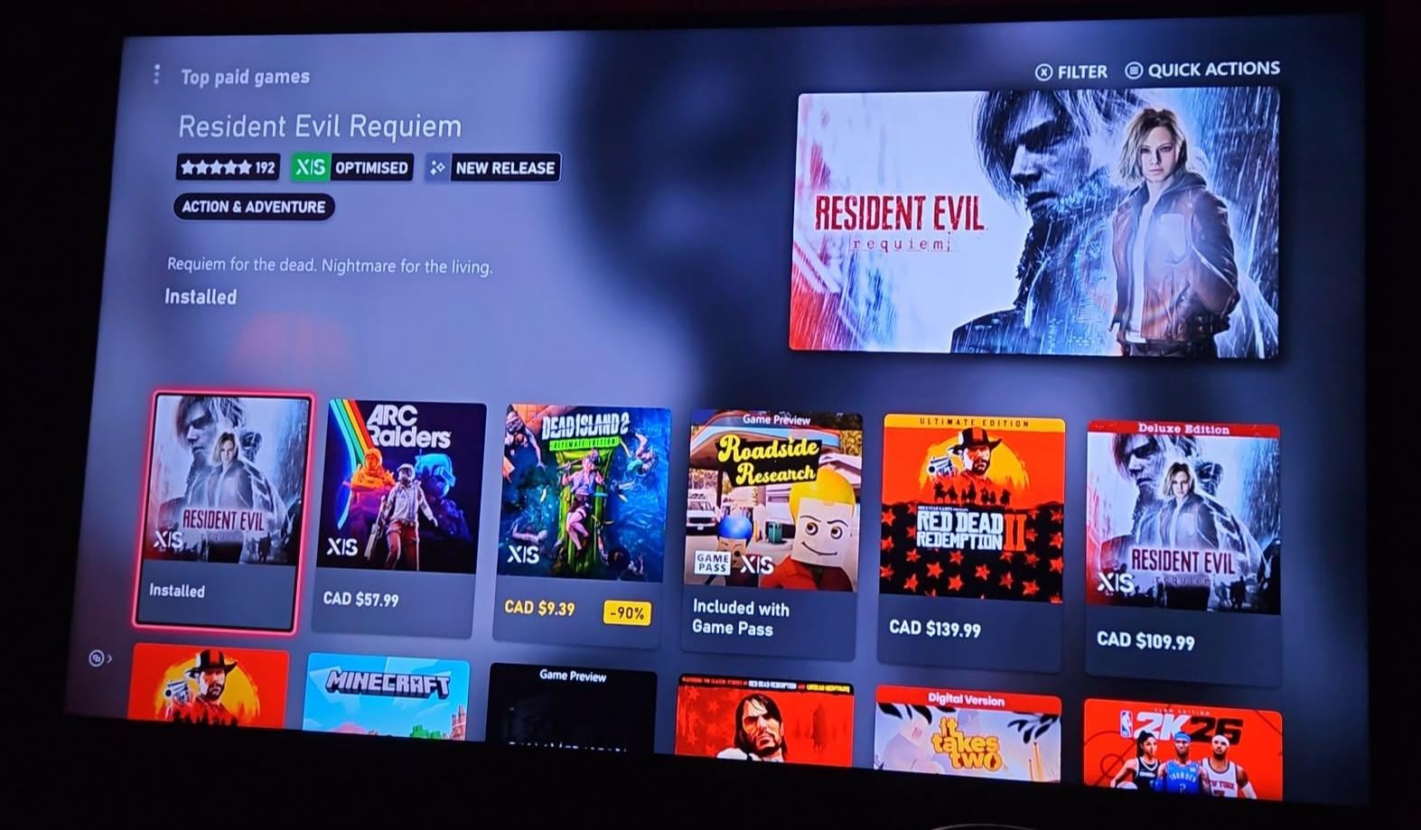 Resident Evil Requiem is currently the most paid game on Xbox Series X beating out big names like Minecraft, Arc Raiders, Red Dead 2, etc.