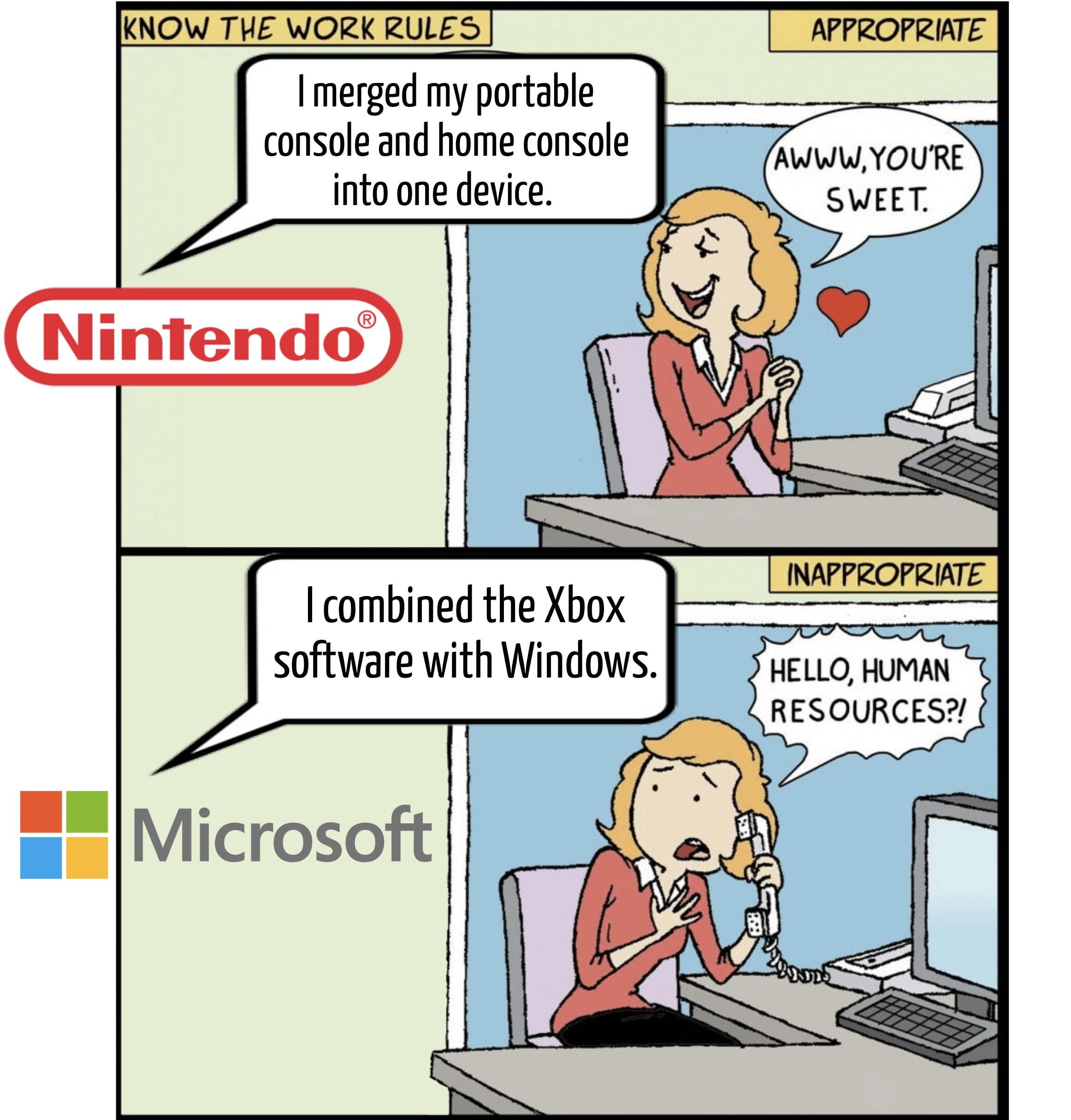 If Nintendo put OneDrive and Teams on Switch so it could hog system resources, for no fracking reason, I’d clown on them too.