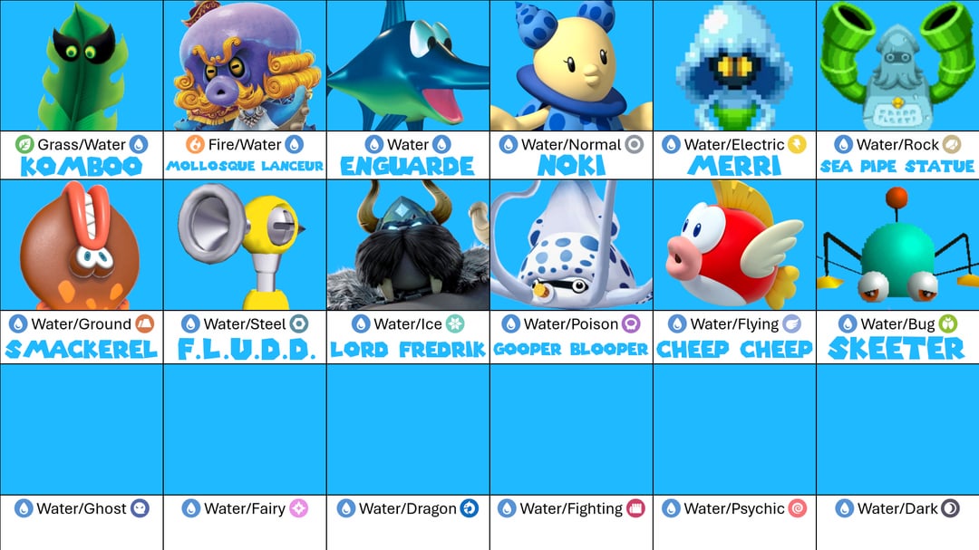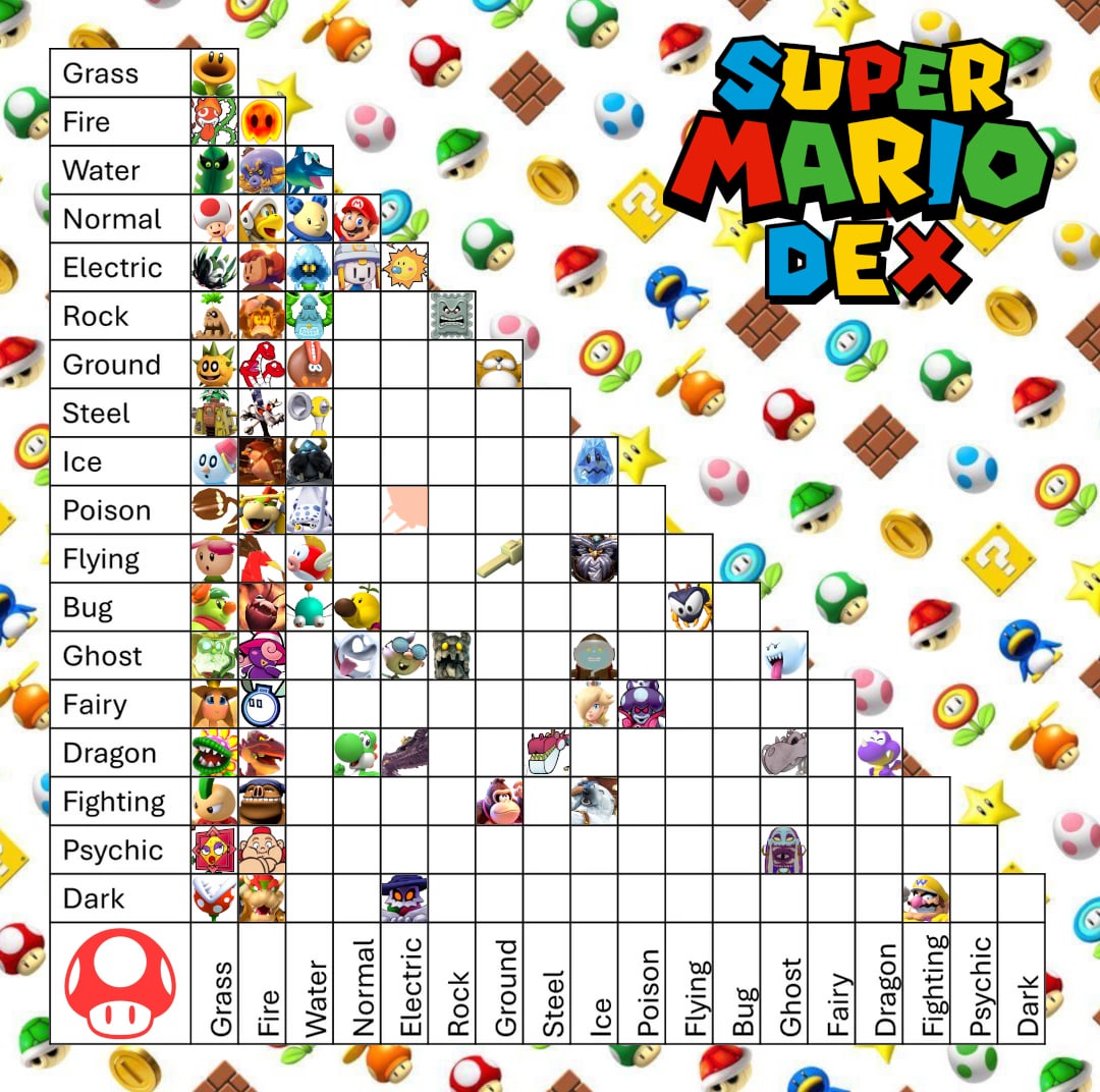 REMINDER: While I'm allowing multiple variants of the same species, I encourage everyone to try to be as unique with your choices as you can. Mario has a large character roaster, and I would love for this chart to represent that in some capacity.