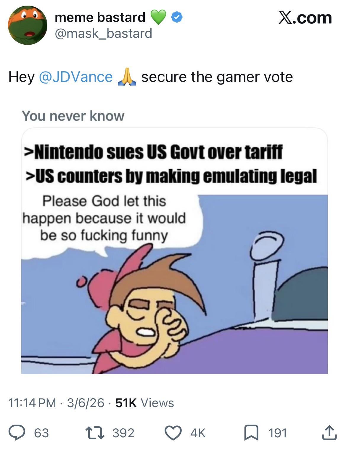Meme account doesn’t know that emulation is already legal.