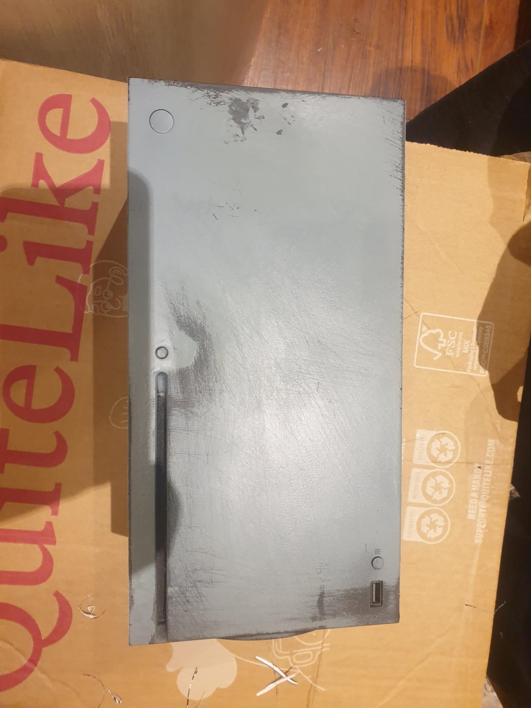 The second pic is what she looked like after sanding. For context, I bought my Xbox from some random weirdo super cheap. It was dusty as hell and reeked of weed. She has now been cleaned and made pretty. If you're in Australia, I got the wrap from Bunnings for about $4!