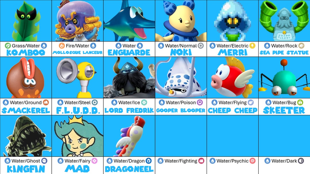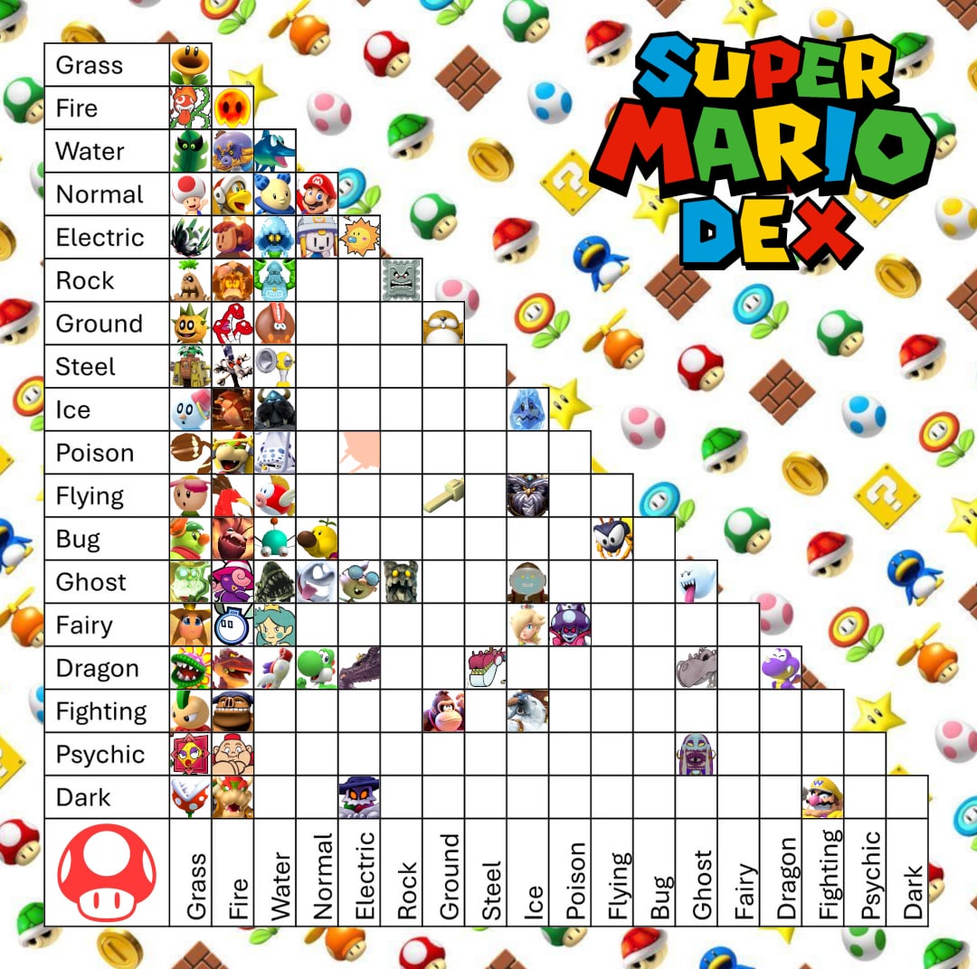 REMINDER: While I'm allowing multiple variants of the same species, I encourage everyone to try to be as unique with your choices as you can. Mario has a large character roaster, and I would love for this chart to represent that in some capacity.