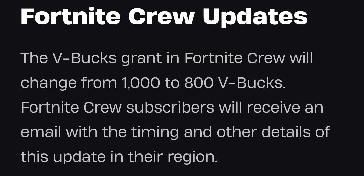 Fortnite changed the pricing. You pay the same dollar amount but only get 800 instead of 1000 bucks. So the crew option changed too, and the game pass reward changed along with it.