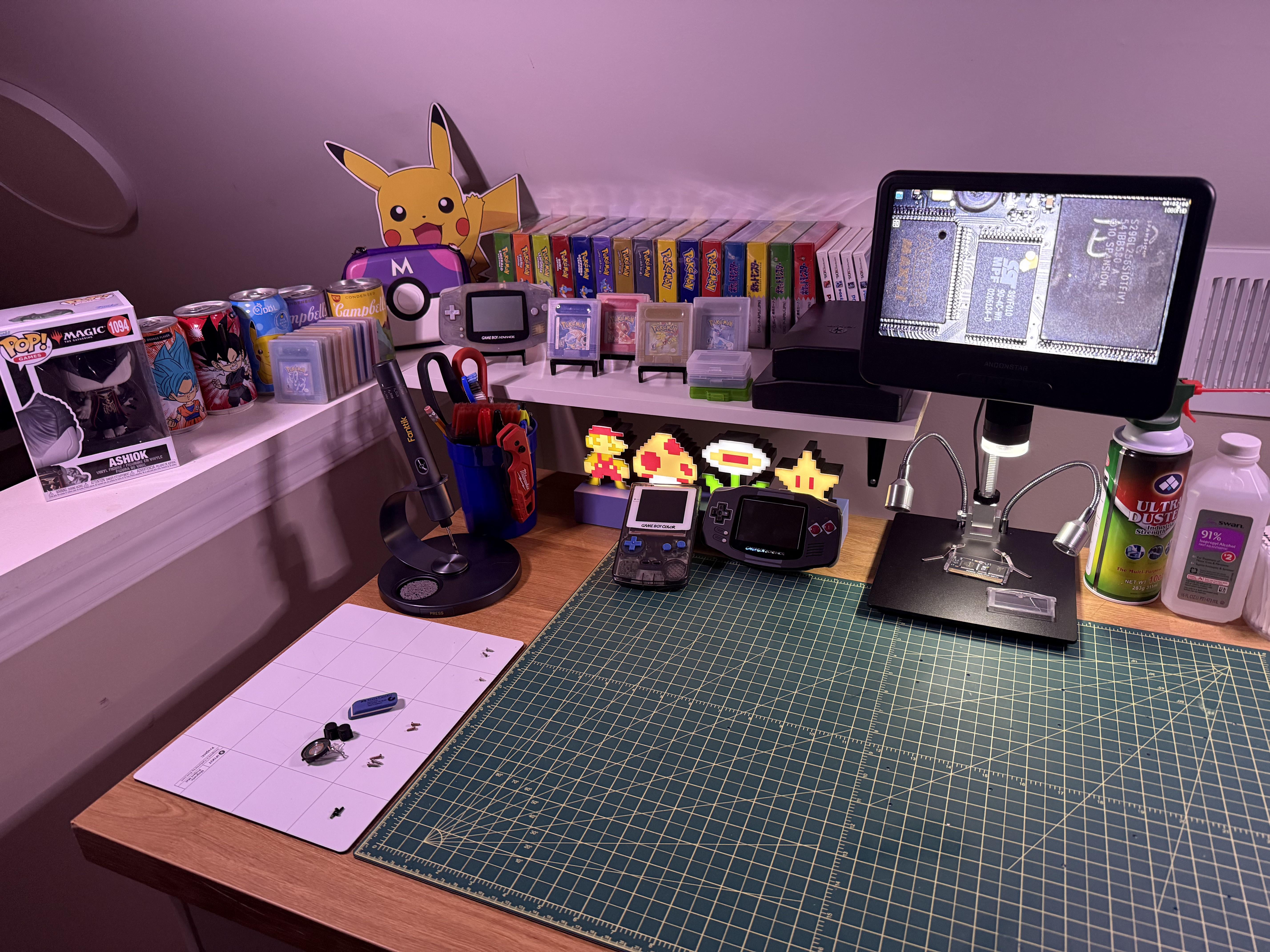 Figured I’d clean up a bit before I got started on filming, so I snapped a pic. I will be modding consoles, repairing game cartridges and capturing gameplay via PC, but most of the action happens on this section of my desk. All gameplay happening on original cartridges, no cheats