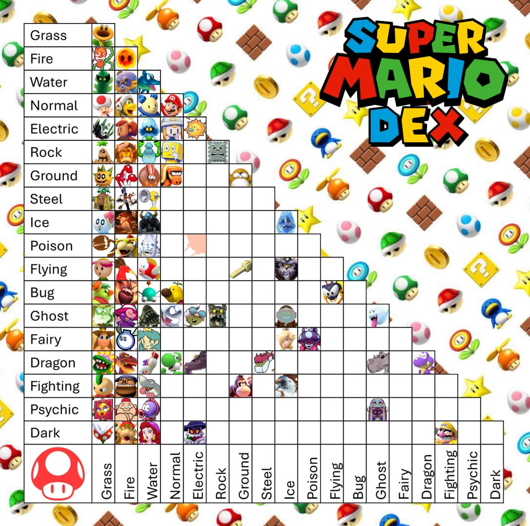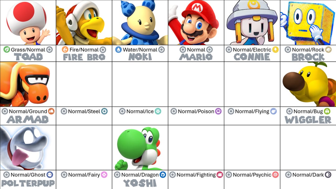 REMINDER: While I'm allowing multiple variants of the same species, I encourage everyone to try to be as unique with your choices as you can. Mario has a large character roaster, and I would love for this chart to represent that in some capacity.