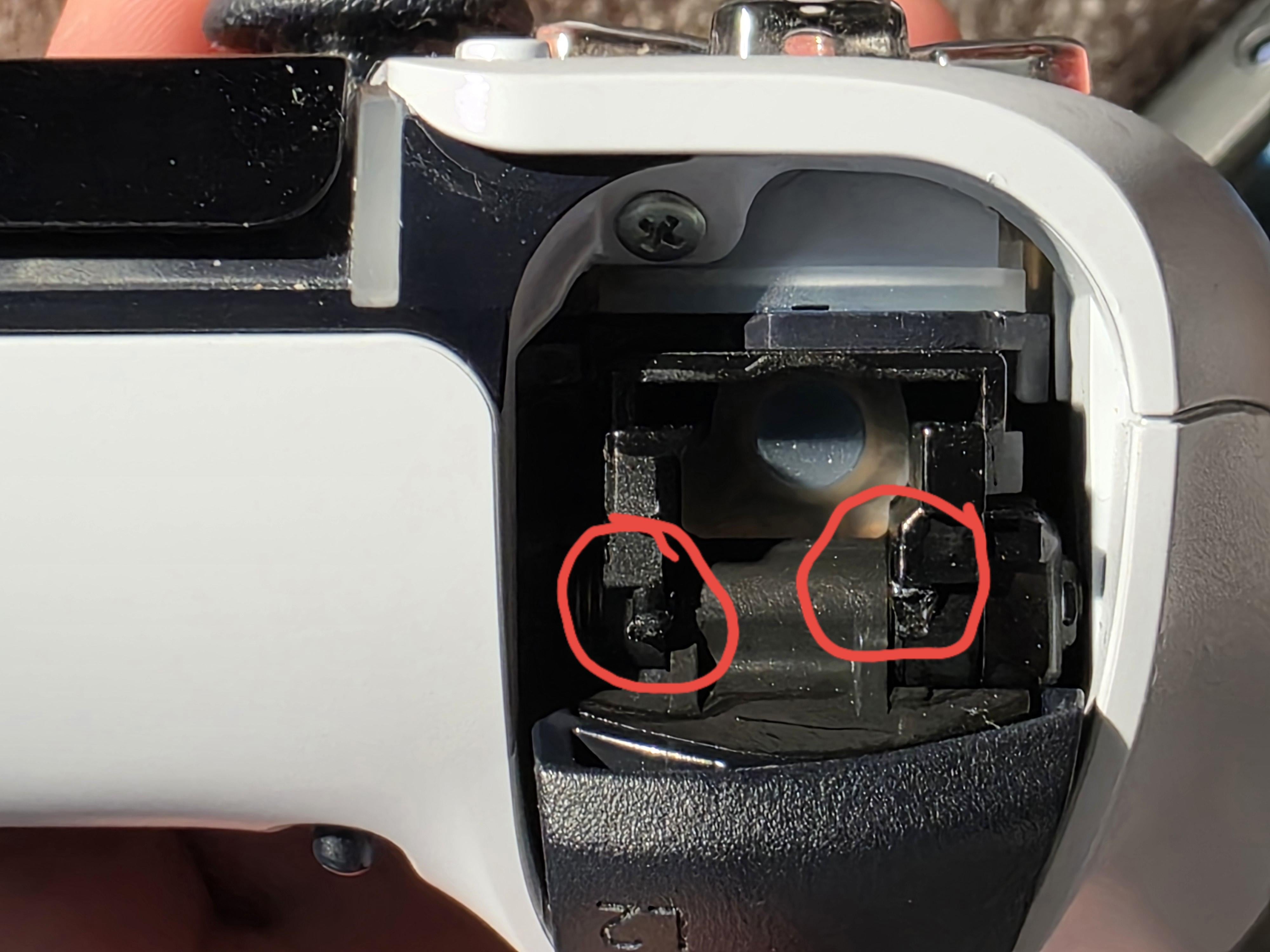 As you can see from the picture them 2 little plastic bits have fallen off and when I use the L1 button it gets stuck.