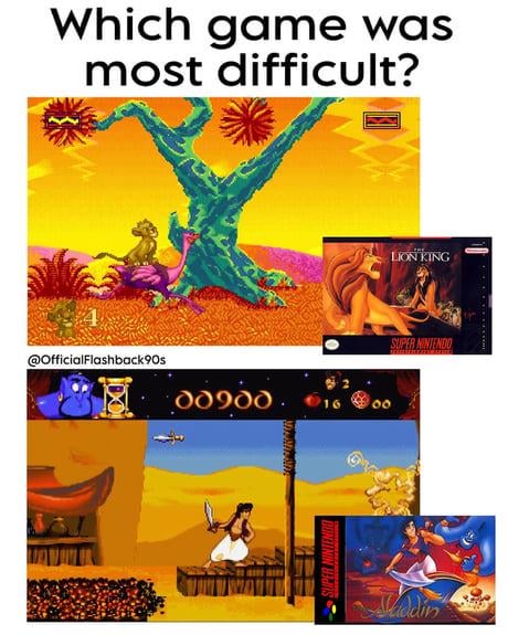 I like how this image shows a screenshot of the Genesis version of *Aladdin* when it shows the cover of the SNES version.