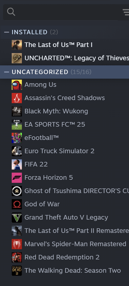 KnightGamer724 on March 17, 2026 9:27 am https://preview.redd.it/vv9vx1ikqkpg1.png?width=252&format=png&auto=webp&s=f430b4fcdf438d1d9e82f43a2b1b31b0fc3a09be Some games are in multiple categories and others are from my Family Sharing, but here’s how I’ve organized my gigantic library.