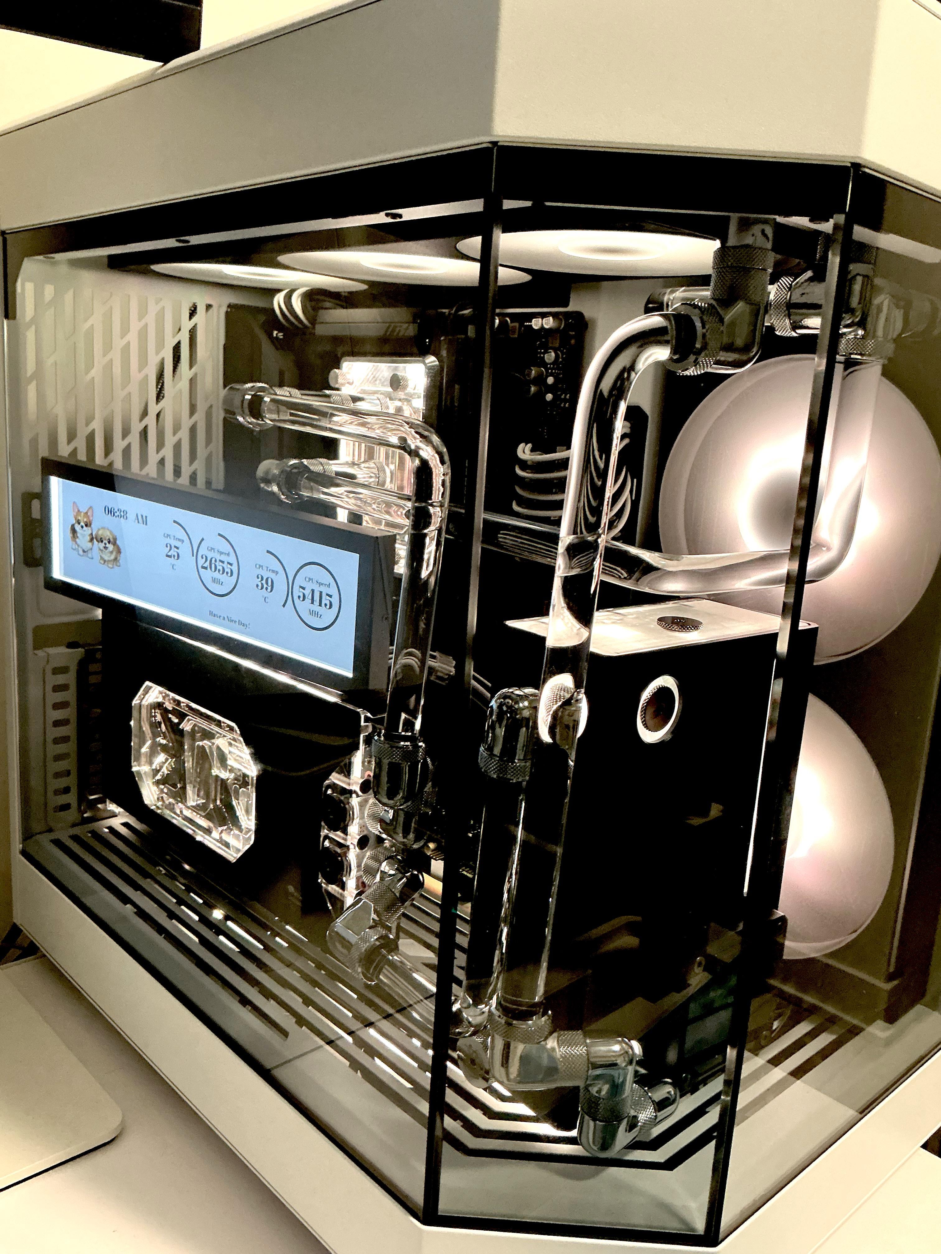 Finally swapped the gpu. Went from a 3090 to 5080. Changed reservoir and added a screen! Super happy with the results! Happy gaming! (Can’t wait to scare myself to sleep with resident evil requiem)