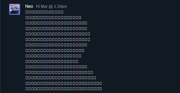 You might have an issue with steam reading your available fonts? or they might have sent it in an odd font you don’t have.